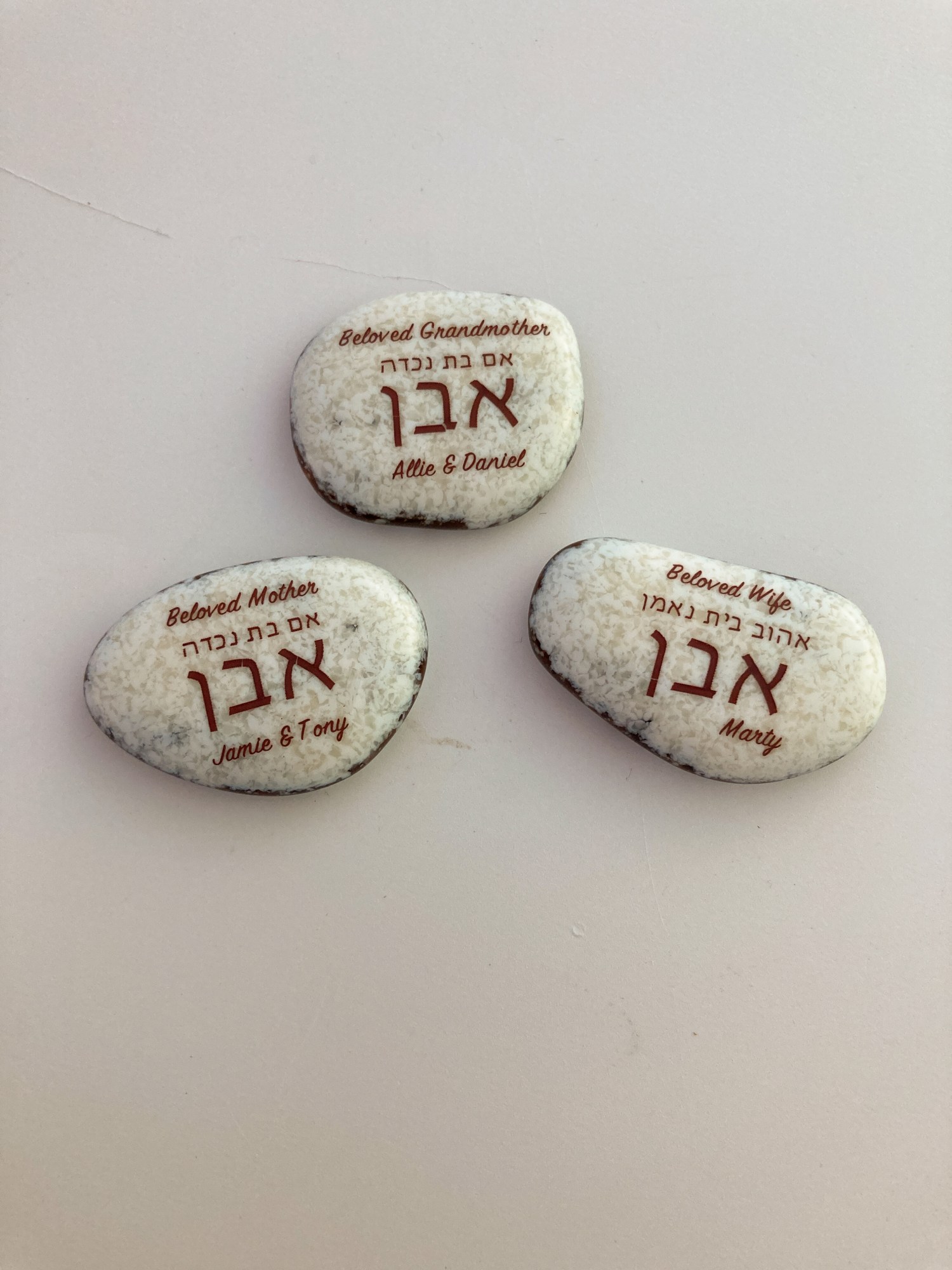 Select a Gen-stone to commemorate the occasion of your visit to a loved one's gravesite. The tradition of leaving a visitor stone on gravesites is a way of confirming both a spiritual and emotional bond with your loved one. Personalization $3 per stone.