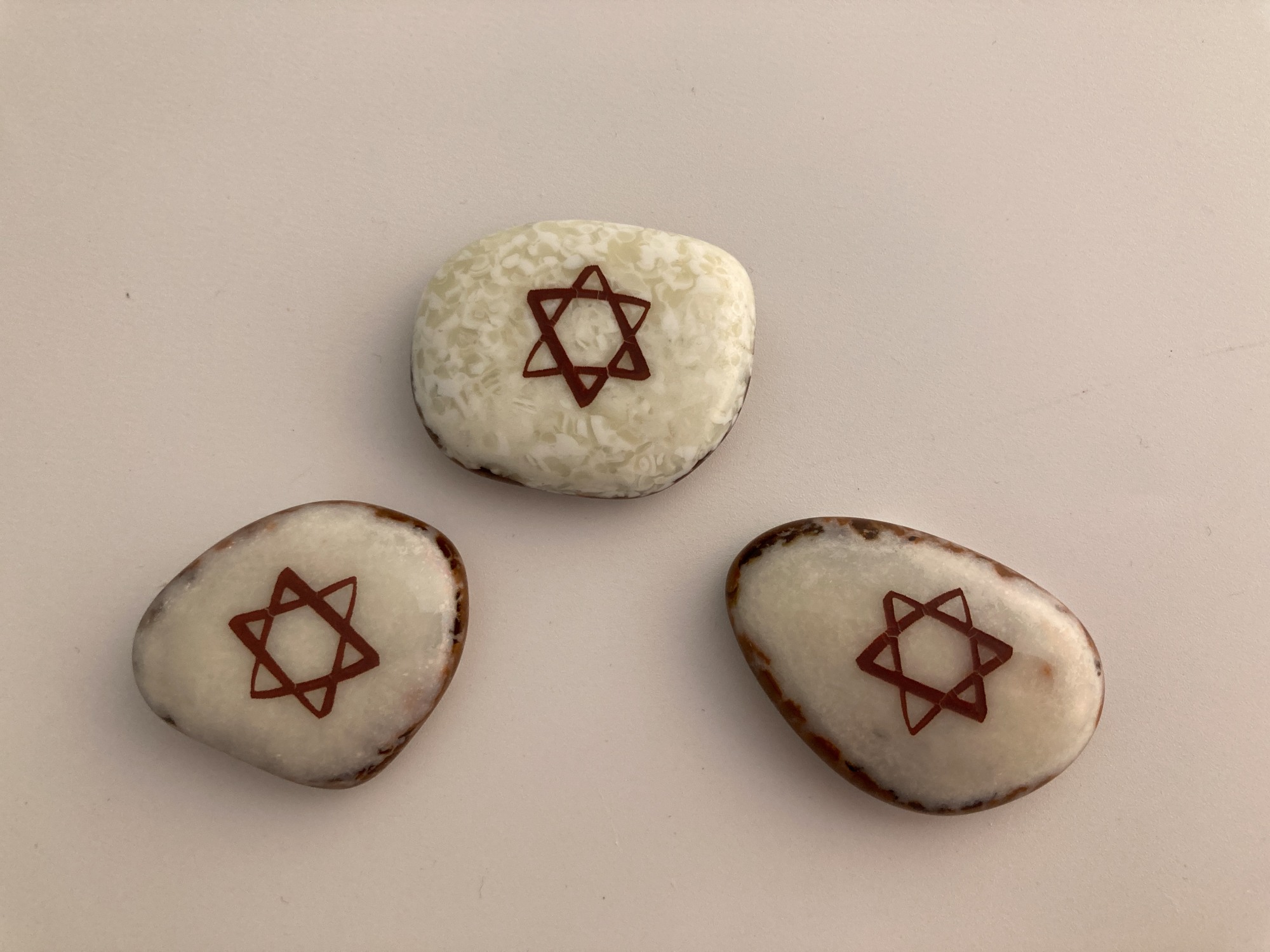 The tradition of leaving a visitor stone on gravesites is a way of confirming both a spiritual and emotional bond with your loved one. Star of David Genstone #1132