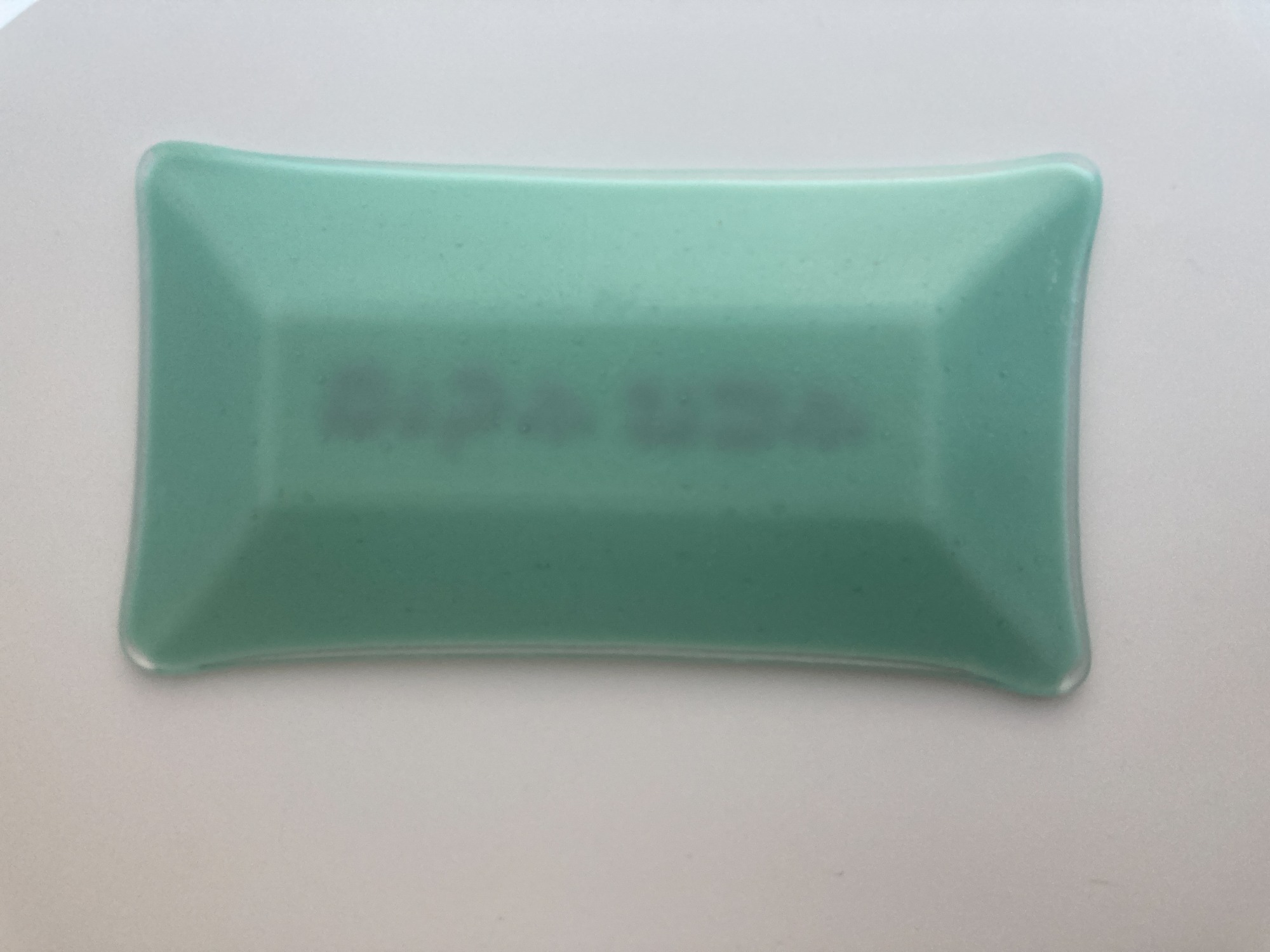 Set your summer table with this lovely serving dish, featuring fanciful Shabbat Shalom lettering in ivory on robin's egg blue glass.