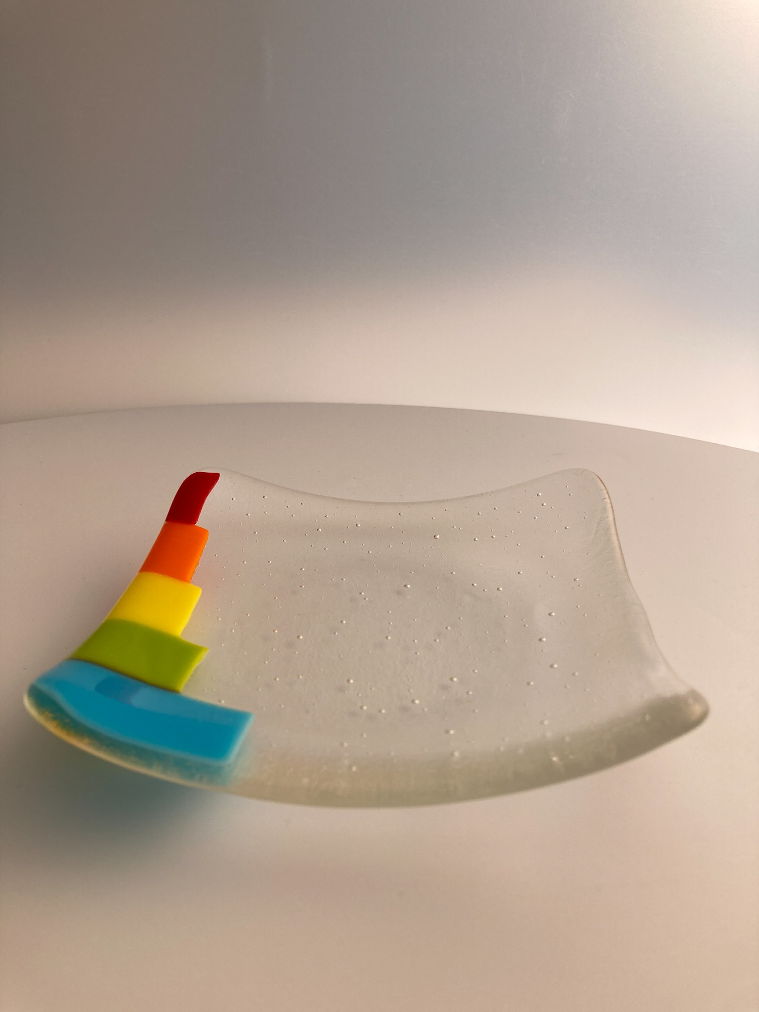 A touch of rainbow. Glass dish for matches, rings, teabags, or tapas.