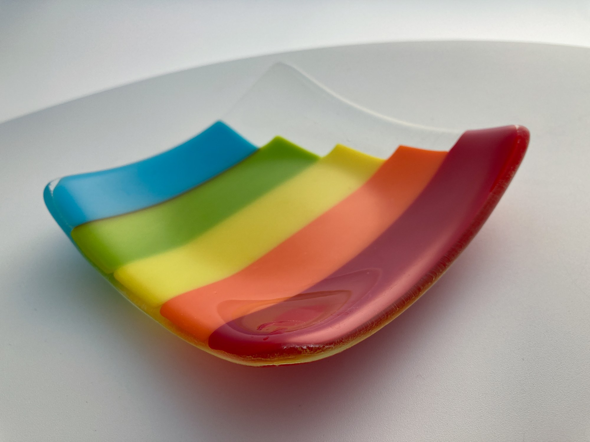 A stepped rainbow. Glass dish for matches, rings, teabags, or tapas.