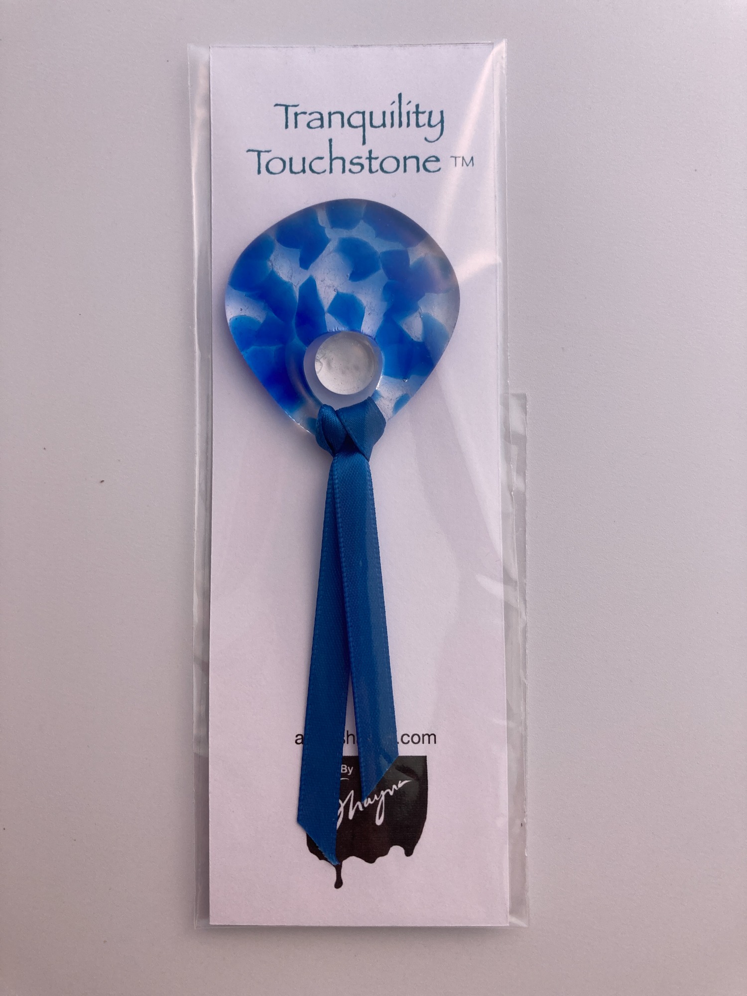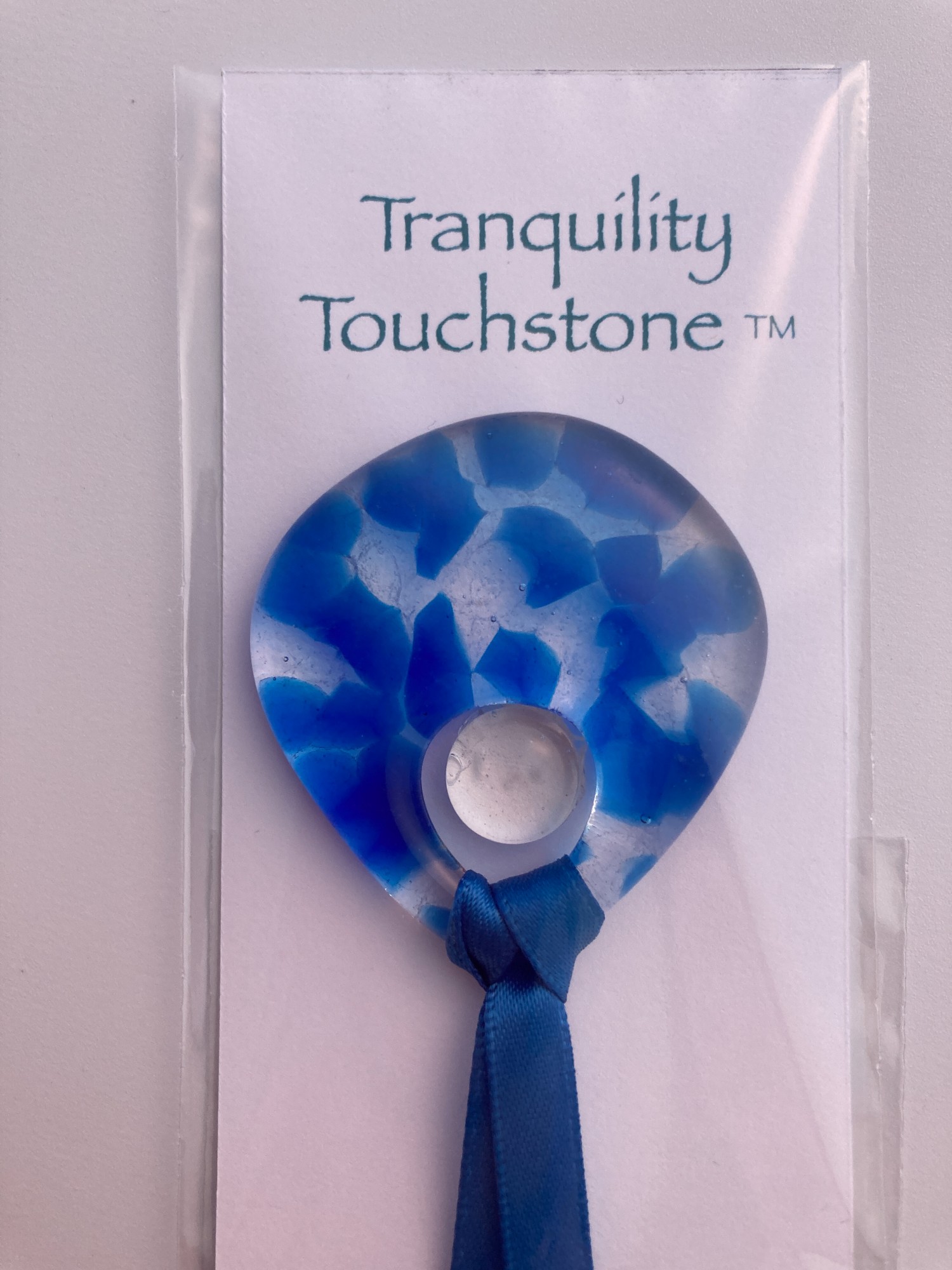 Fused glass rubbing charms that people can share to show their support for those who have been touched by cancer. Their calming and soothing texture can help you focus on your senses, remind you to practice mindfulness and calm your anxiety. Easy to carry with you or wear as a pendant.