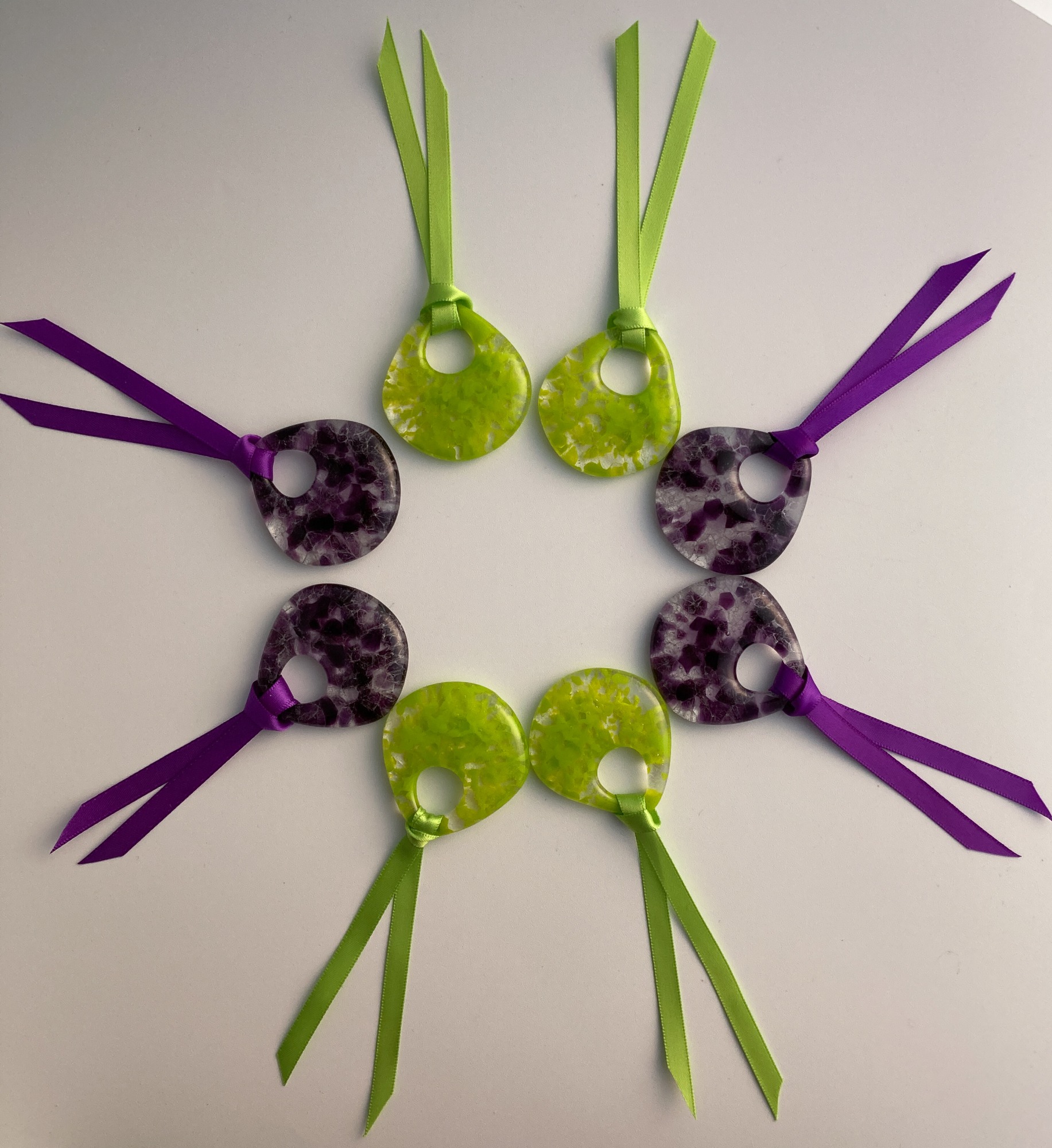 Fused glass rubbing tiles that people can share to show their support for those who have been touched by cancer. Their calming and soothing texture can help you focus on your senses, remind you to practice mindfulness and calm your anxiety. Easy to carry with you or wear as a pendant.