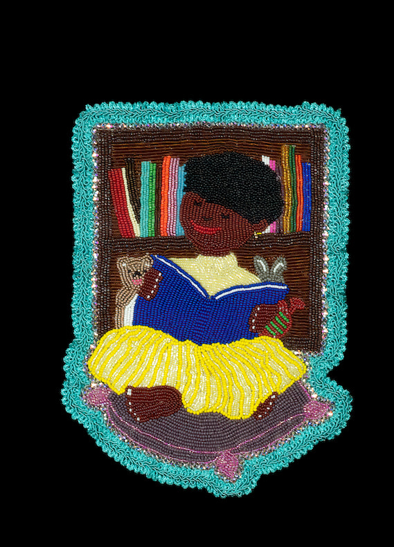 This piece is a tribute to my ongoing work in the area of youth literacy. Through the Donald Harrison Museum and Cultural Center's signature program, Big Chief Donald Harrison, Sr. Book Program, over 40,000 new books have been distributed to area children. The goal of the program is to enhance children's love of reading and academic achievement. My late husband, read over 40 books a year and always gave books as gifts. The program was conceived to honor his memory and legacy. As an 84 year old, I cannot maintain the program as it has occurred in the past due to the pandemic and my advanced age. However, I want this piece in some way to be part of the legacy of the program.
