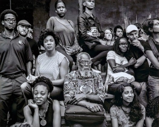 This photo captures the great cultural and literary figure Kalamu ya Salaam surrounded by young people. In New Orleans, it is historically and culturally common for elders to give back and to teach younger people the trades and lessons to sustain the culture and community of our unique cities where our traditions are lived and not just practiced. This photo capture the youth ready and willing to sit and learn from an elder and an elder ready to pass it on to the youth by any means necessary.