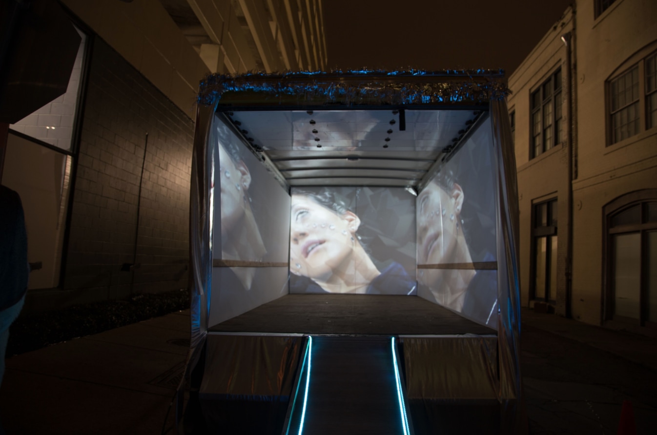 Interactive installation with custom denta-mandibular sound transmitting lollipops, and miniature video projections, inside of mirrored hexagonal sculptures.