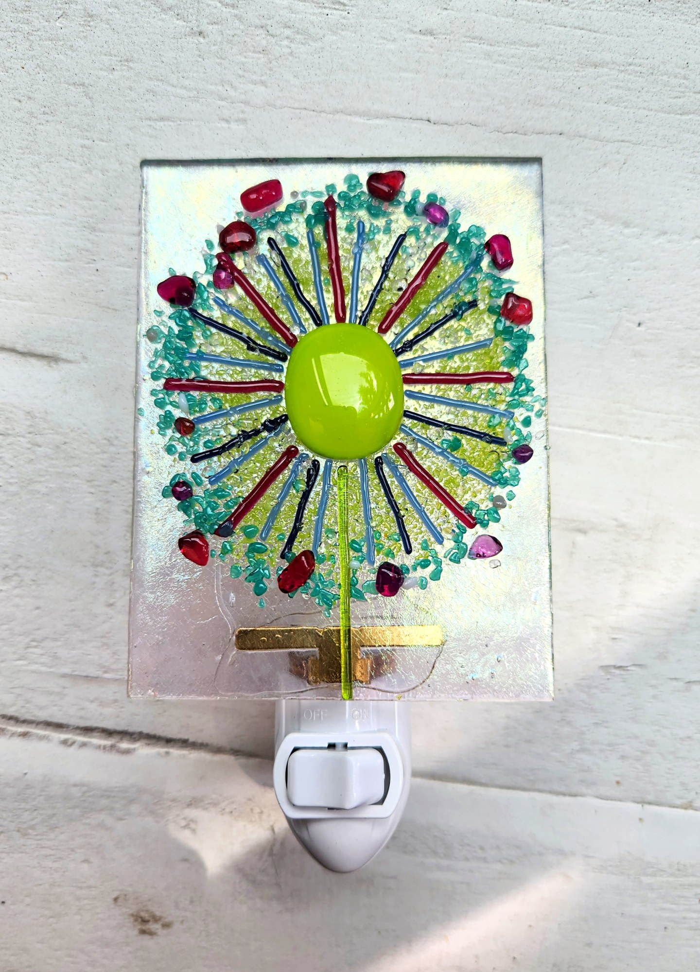 Lime Green/ Turquoise/ Pink Dandelion on Iridescent BG NL AKEA147 or 169