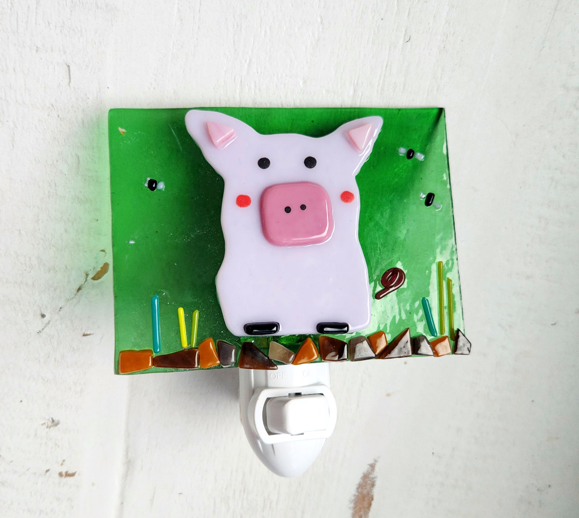 Pig Nightlights/ Green BG/flies by Ashley Akerlund, Image 1.
