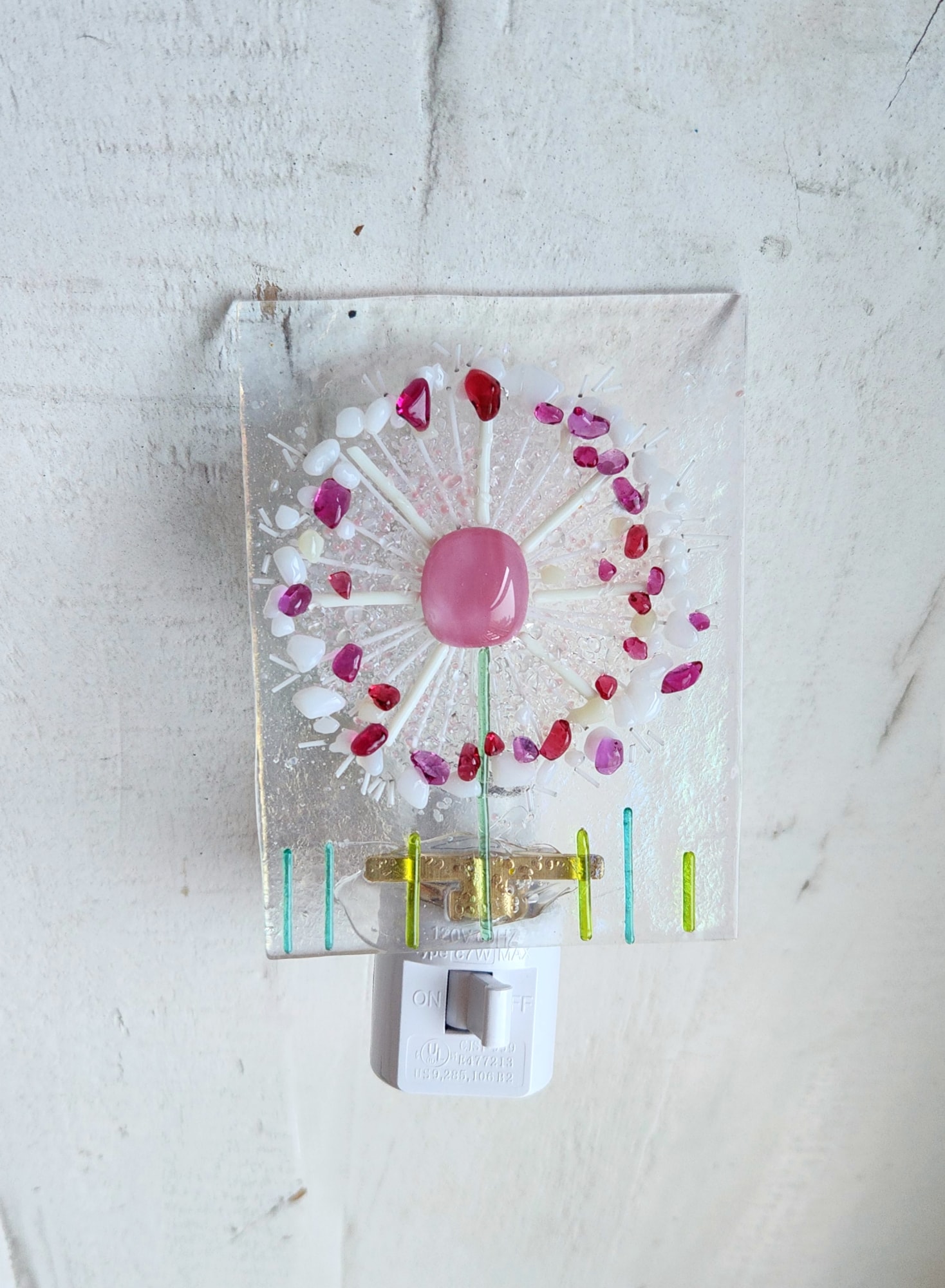 Lime Green/ Turquoise/ Pink Dandelion on Iridescent BG NL AKEA147 or 169