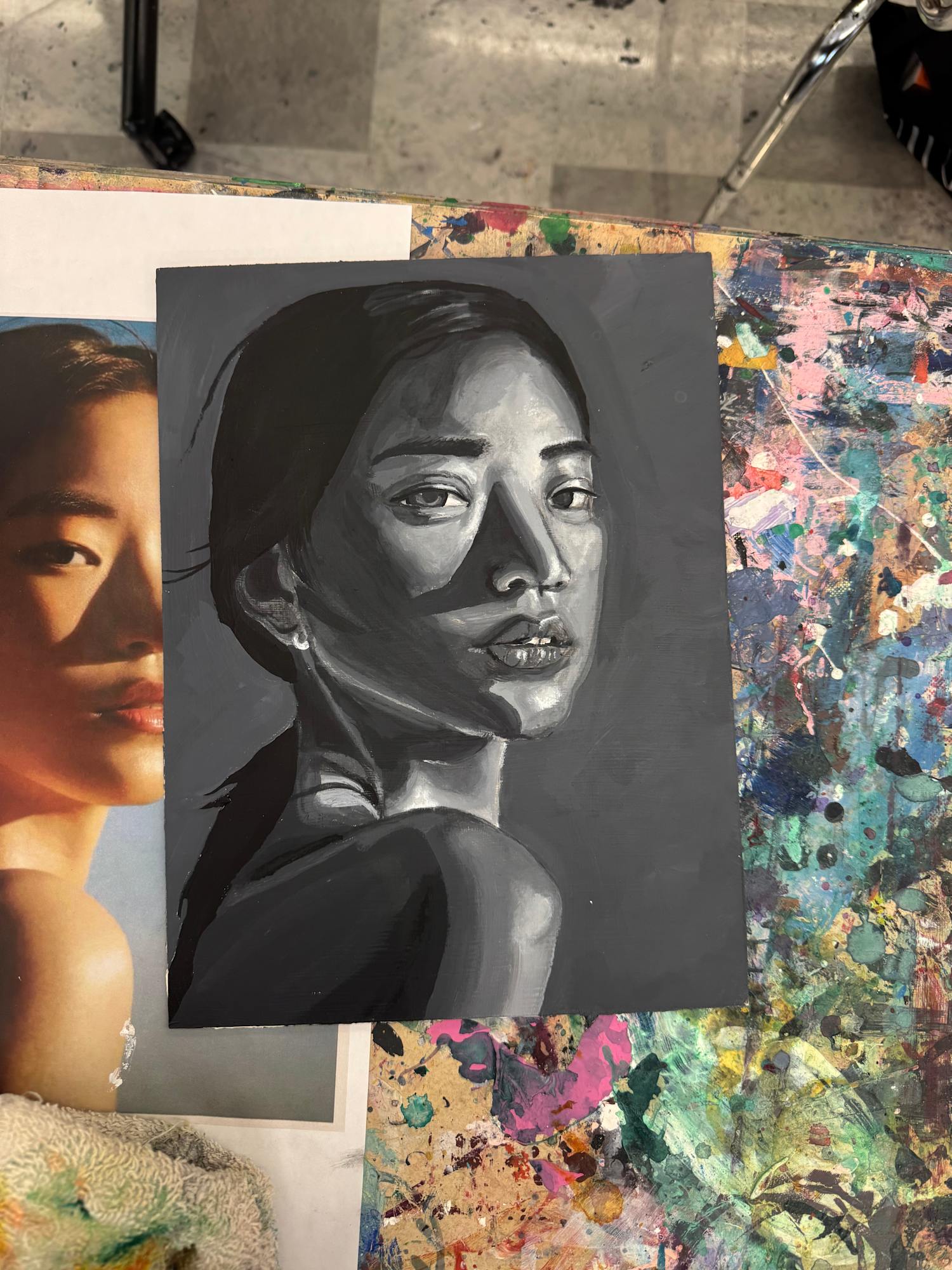 An acrylic underpainting study for my representational painting course at Salem State. From this point, we will be applying color to the portrait with oil paint. Stay tuned!