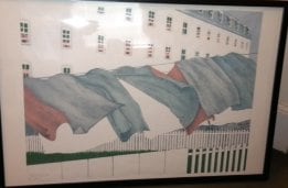 - Subject Matter: Simpson Multiple sheets hanging on a line in front of a Hotel. Purchased from the Metropolitan Museum of Art, Mezzanine Gallery Seal. 35/50. June 5, 1995