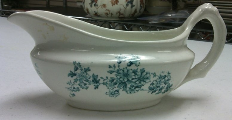 - Subject Matter: Gravy boat with blue and white floral design