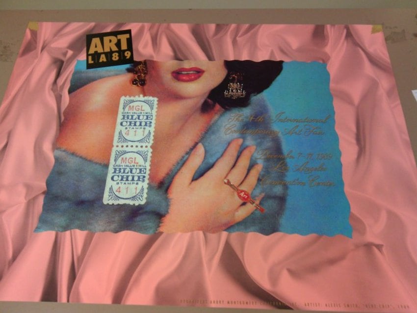 • Subject Matter: Poster of woman in blue fur wrap with pink silk background. Set of 5 - 2/5. Art LA 89 Alexis Smith