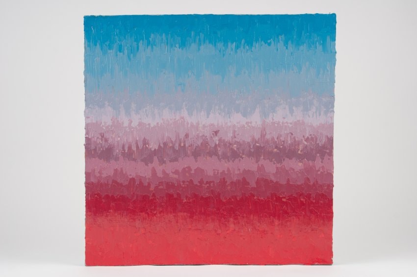• Subject Matter: Abstract painting with strata of blues, purples, and pinks.