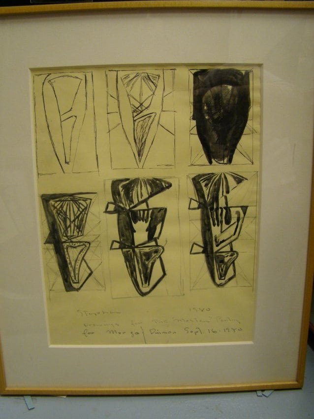 - Subject Matter: BUPAC1086 Series of Small SketchesDepicting an abstract composition with two rows of three abstract forms, with artist's text along the bottom. Deaccession Water damage caused by leaky AC in Owens office in 2006