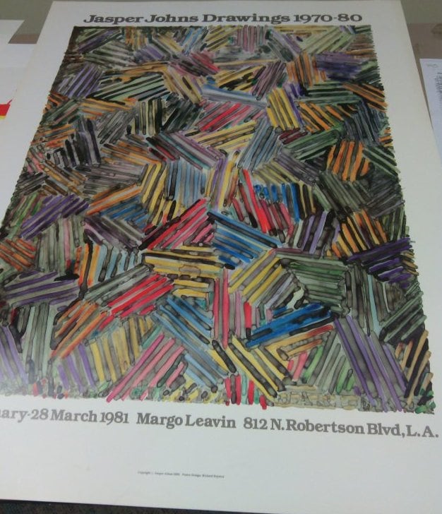 - Subject Matter: Poster of Jasper Johns watercolor. Colorful lines combined together to form a rectangle. set of 5 - 2/5 Margo Leavin Gallery Jasper Johns