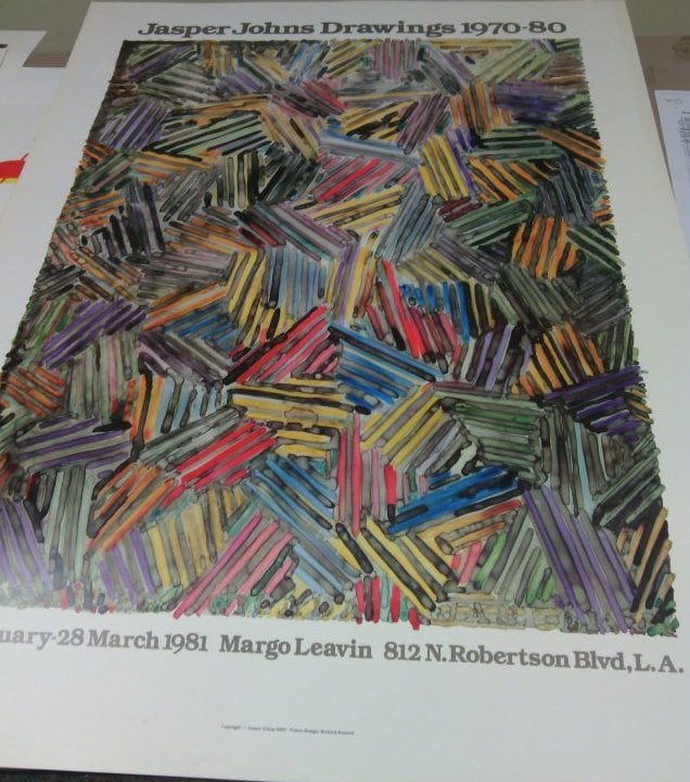 - Subject Matter: Poster of Jasper Johns watercolor. Colorful lines combined together to form a rectangle. set of 5 - 3/5 Margo Leavin Gallery Jasper Johns
