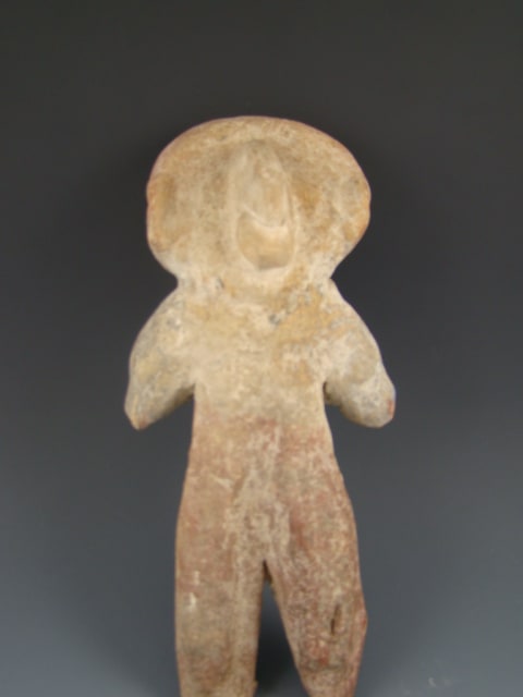 - Subject Matter: Male figure, Pre- Columbian, Ceramic sculpture, four limbs, brown color research on artist needed deaccession