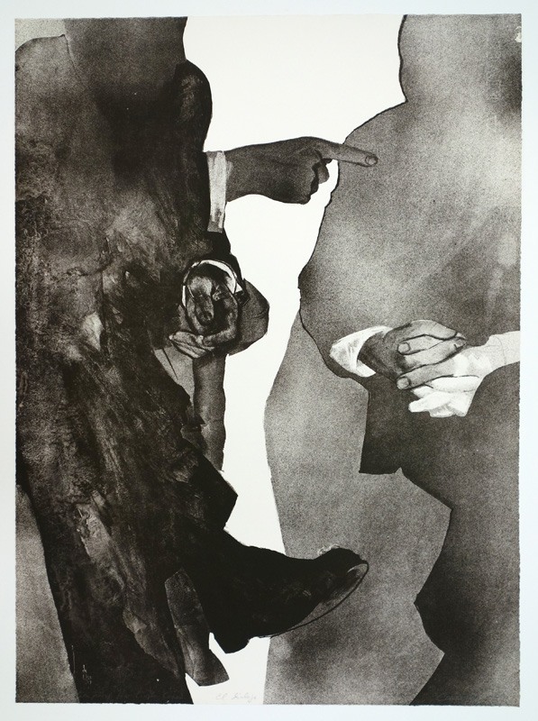 • Subject Matter: Canogar Two black and white forms sitting down one with legs crossed, one with hands folded. Edition of twenty. Presentation Proof. Published by Tamarind Lithography Workshop, Inc.