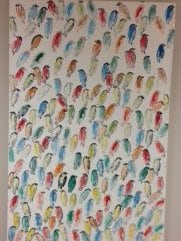 - Subject Matter: Finches Brightly colored small birds in profile against a light background