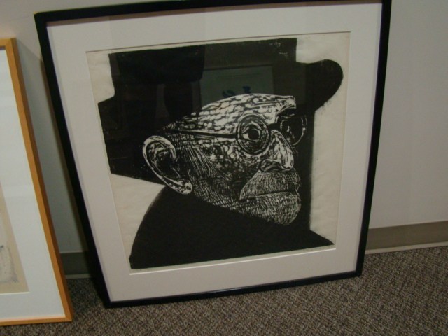 - Subject Matter: signed and numbered:30/40. A portrait of an old men with glasses and a black hat.woodcut