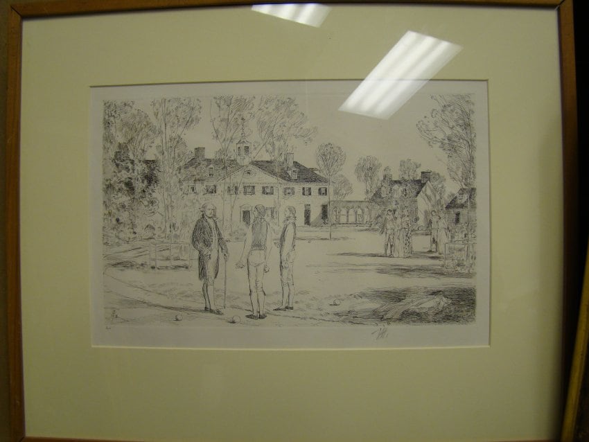 3 men in front of a house, American Impressionist artist