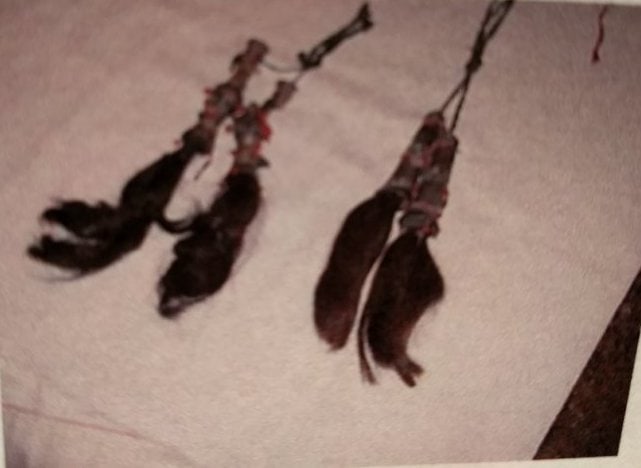 - Subject Matter: Purchased in the Bukhara Market for $10 in May 1997 These are not matching earring. There are two black ones tied together and two brown ones tied together. Collector Notes: " When I first saw these earrings in the market in Bukhara, they were tang