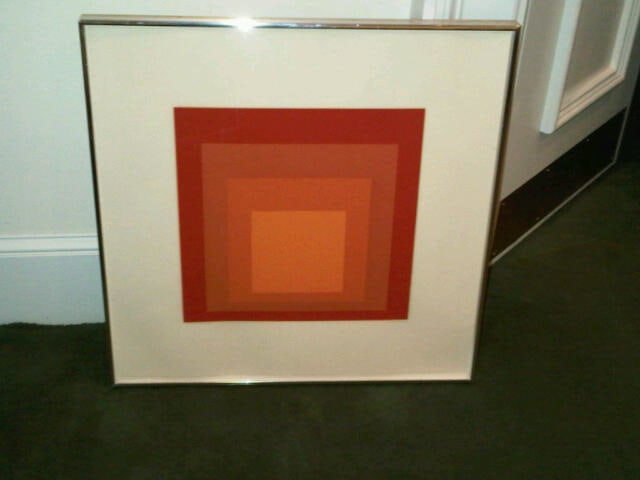 - Subject Matter: Red Squares Descending red boxes with various shades of red MMA-2 3/3 Done in Commemoration of the Mets 100th: Met's Seal on piece of art