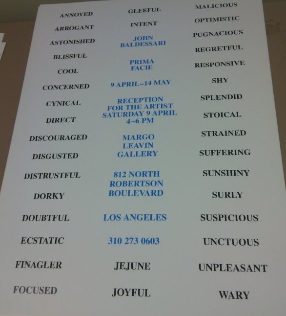 • Subject Matter: White poster with blue and black words. Only words Set of 3 - 3/3 Margo Leavin Gallery John Baldessari