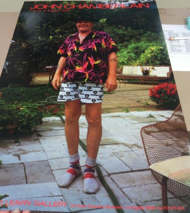 - Subject Matter: Poster of photograph of man standing outside with bright pattern clothes set of 6 - 3/6 Margo Leavin Gallery John Chamberlain