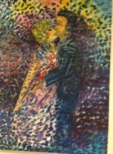 - Subject Matter: Kiss Kissing couple rendered in jewel tones