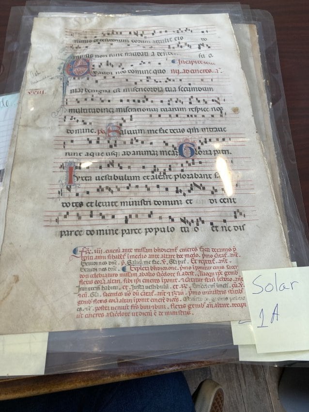 • Subject Matter: ILLUMINATED MANUSCRIPT. Gradual. Origin/Date: Tuscany (likely Pisa with Florentine and Sienese influences) c. 1350 Medium: Latin manuscript on vellum with music on four-line red staves with neumes in black Dimensions: 17-3/4 x 11-3/4 inches/ 451 x 298.5