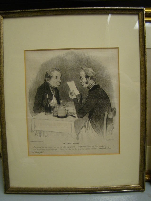 - Subject Matter: BUPAC931 etching Two men at a table Torn images from book Type visible on back sides of paper. Early life Daumier was born in Marseille to Jean-Baptiste Louis Daumier and Cécile Catherine Philippe. His father Jean-Baptiste was a glazier whose lite...