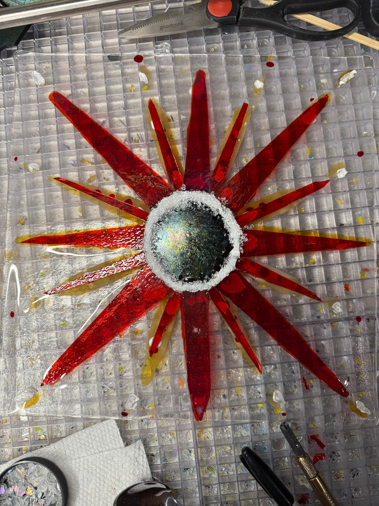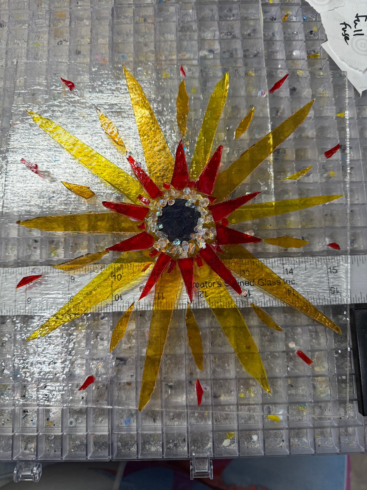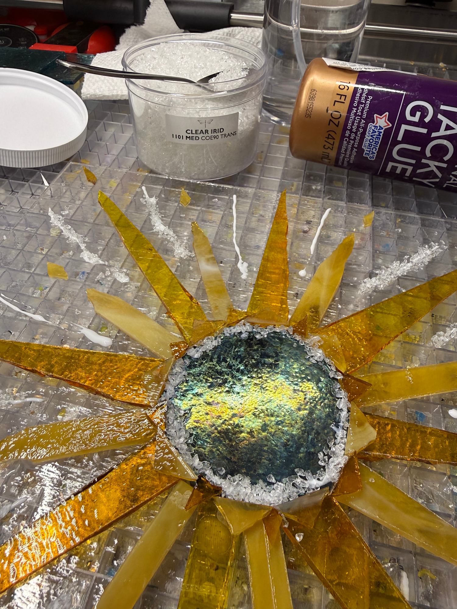 Streaky Gold, Dichroic, and Clear Iridescent Sunburst #1