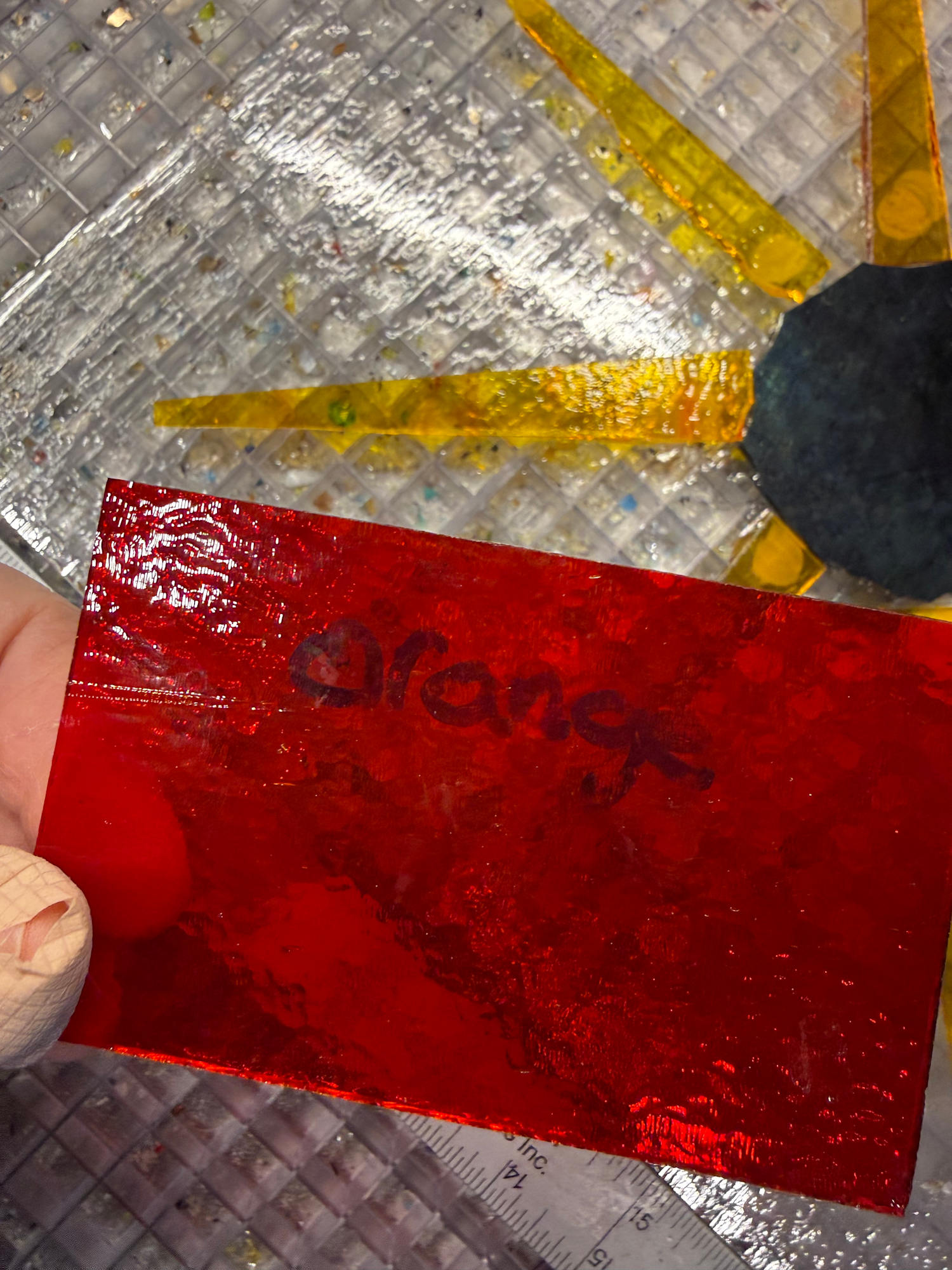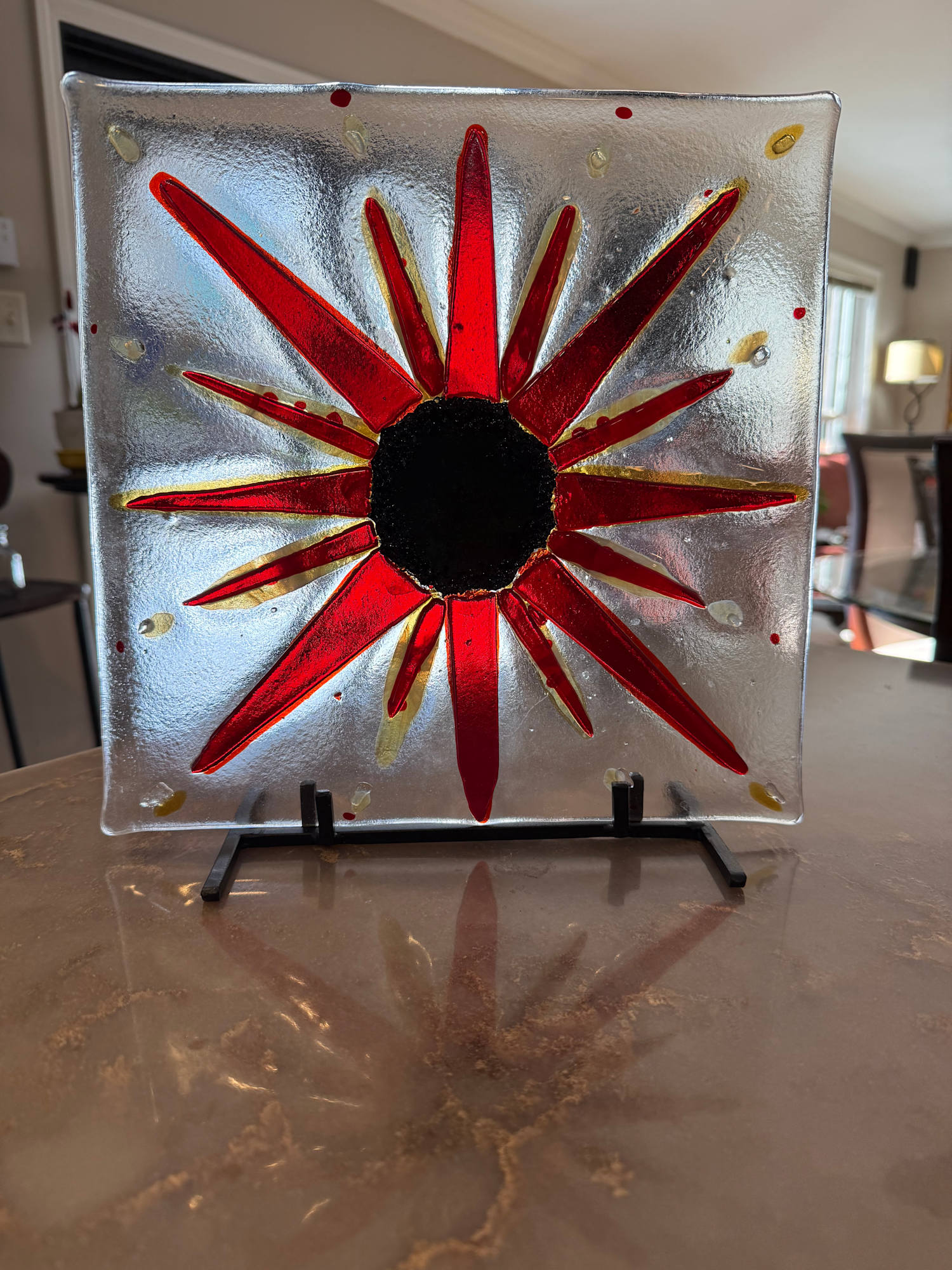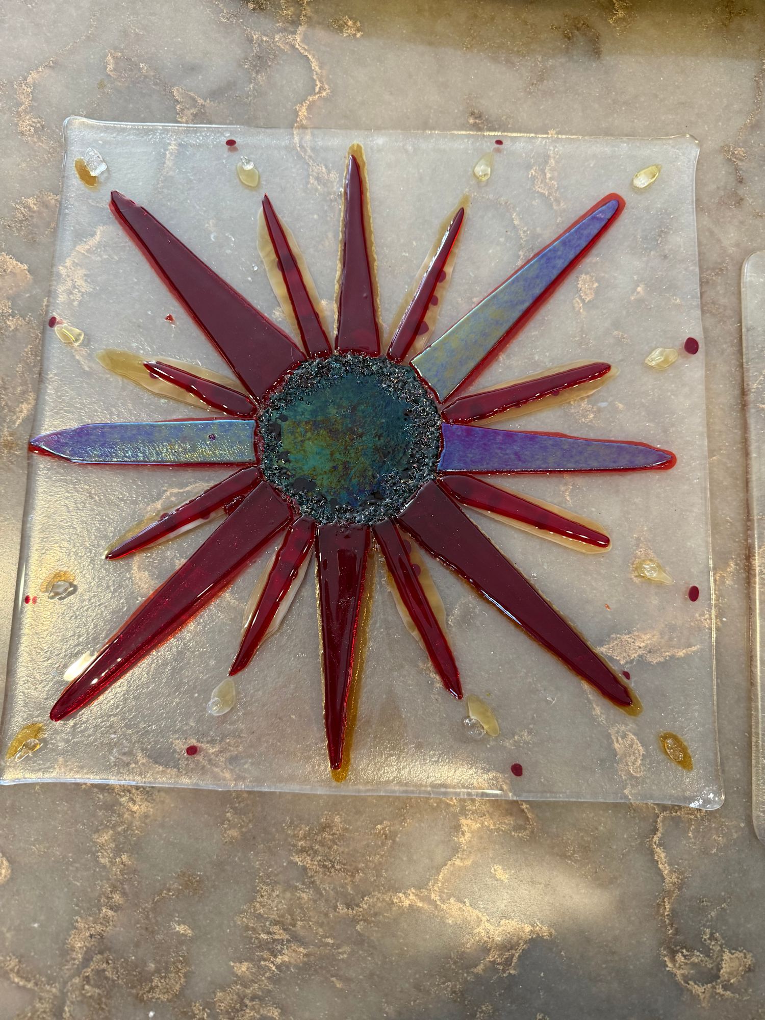 12” Striker Red, Streaky Gold, Clear Iridescent, and Dichroic Sunburst