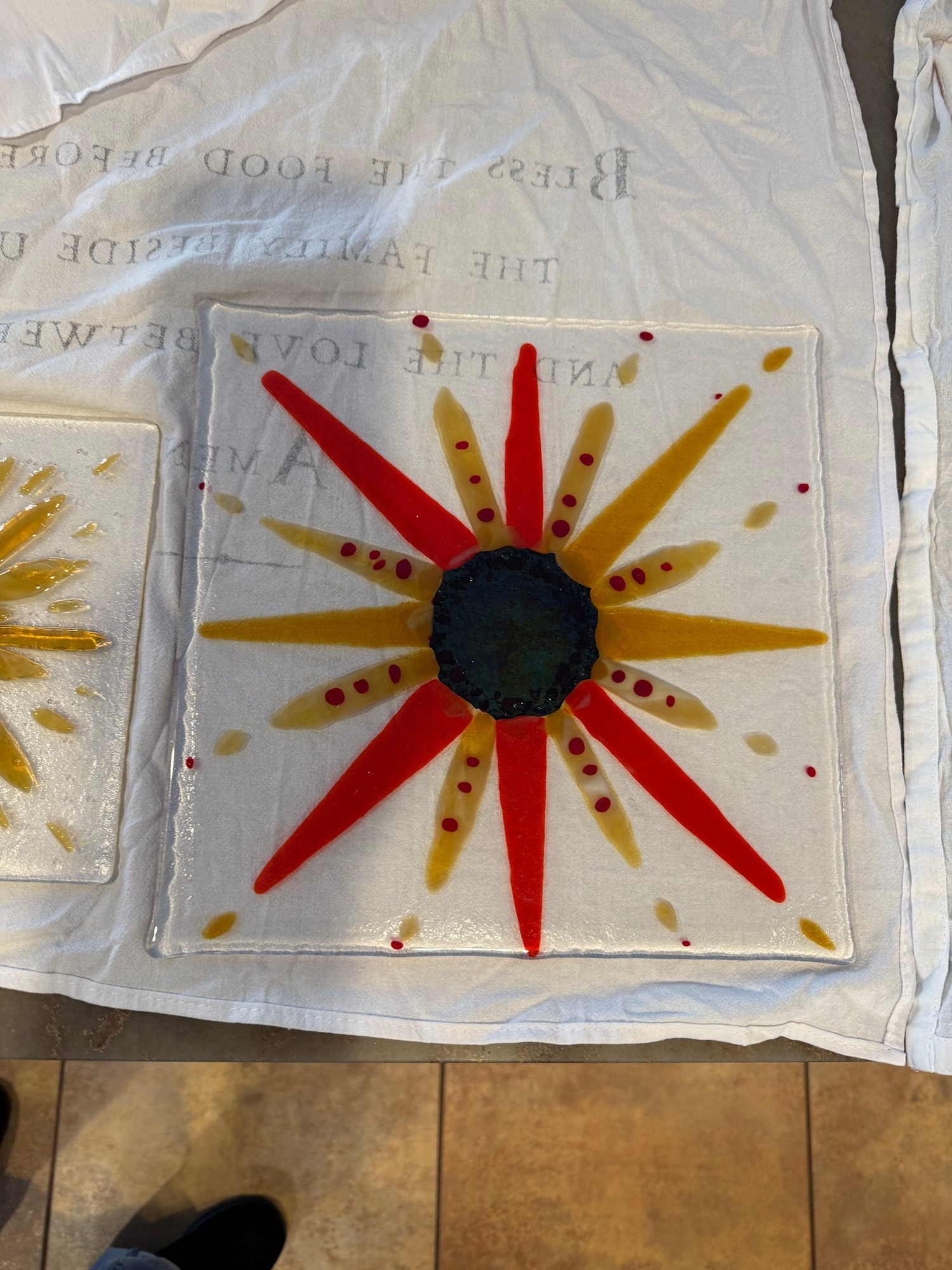 10” Turquoise Square with Stacked Marigold and Cobalt Squares