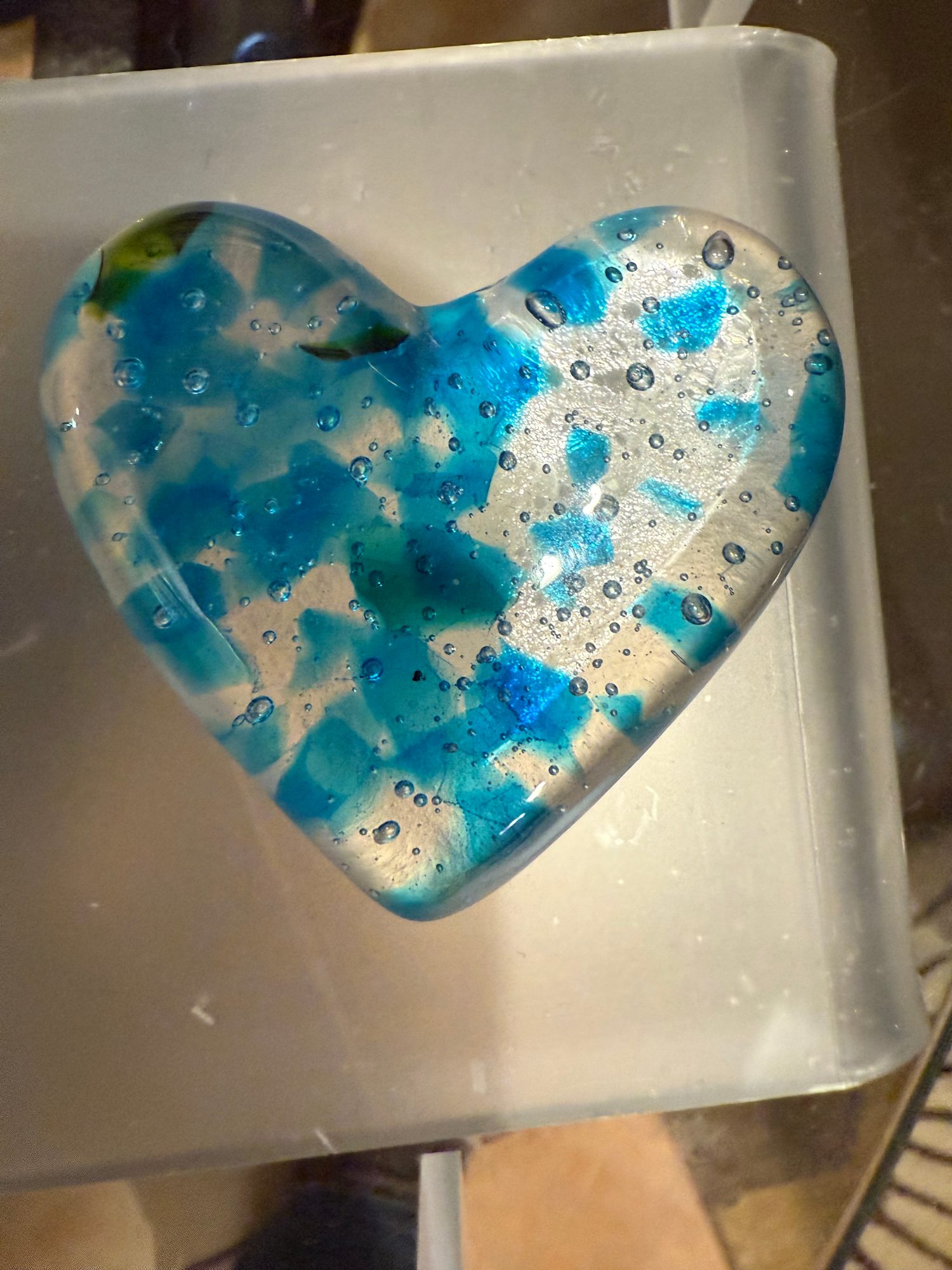 4” x 3” Paperweight Large Heart (Blue White and Turquoise Chunks)
