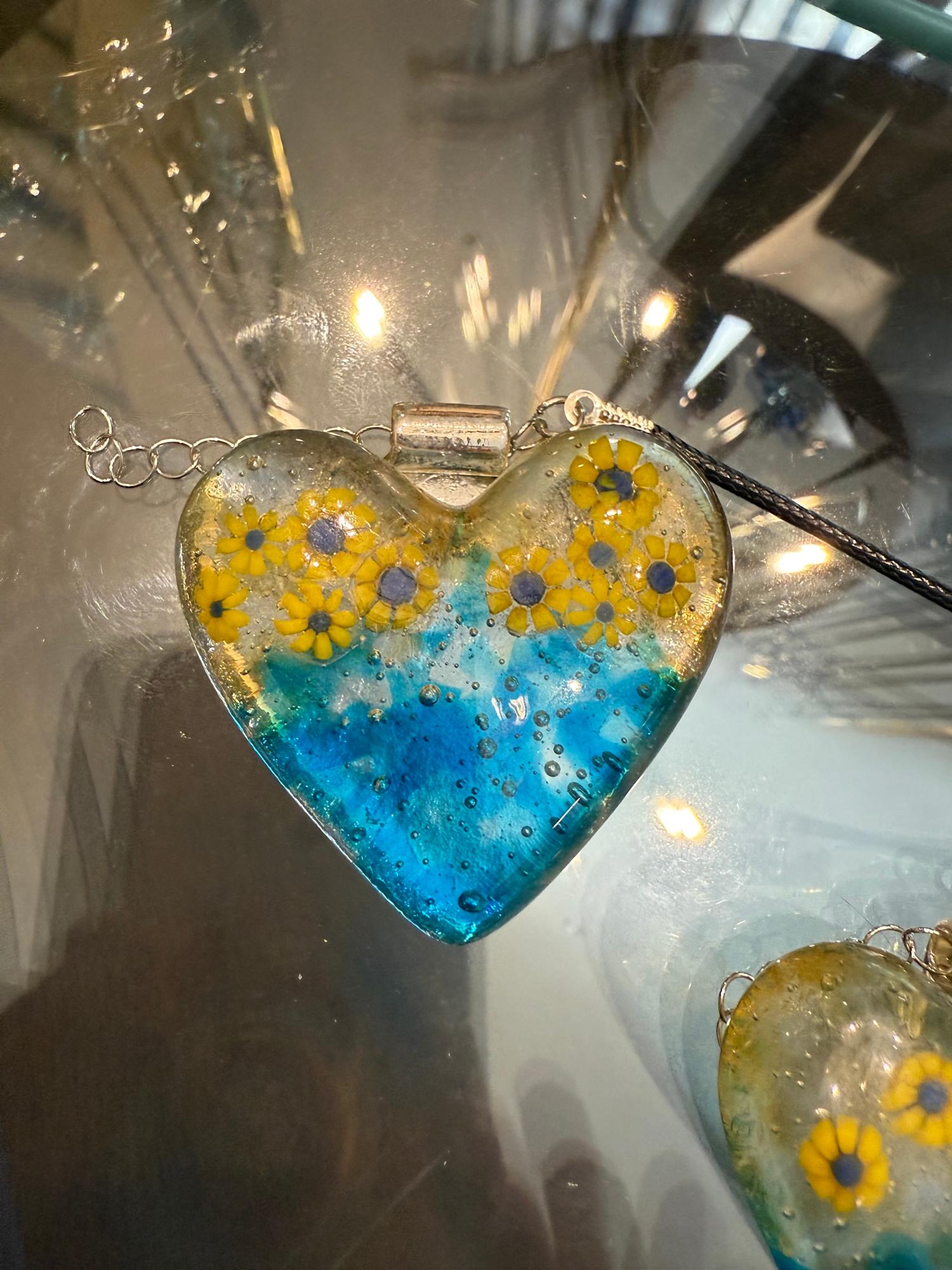 2" Ukraine Sunflower Heart Necklace #2 by Candice Treat Murphy, Image 3.