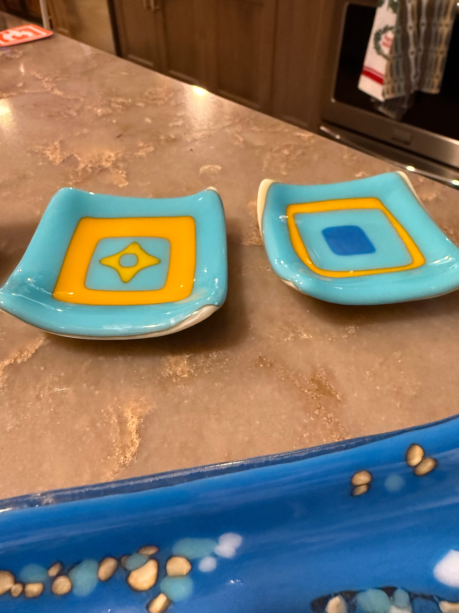 3” Turquoise, Egyptian Blue, Marigold and Vanilla Sushi Dish