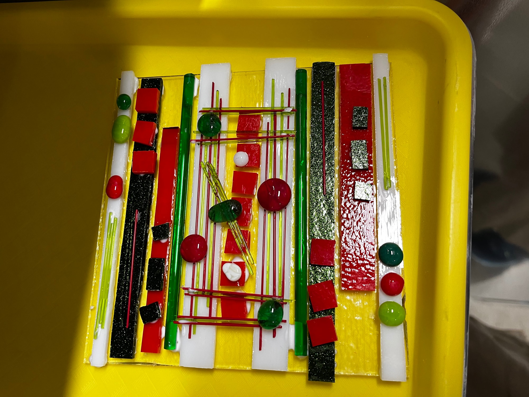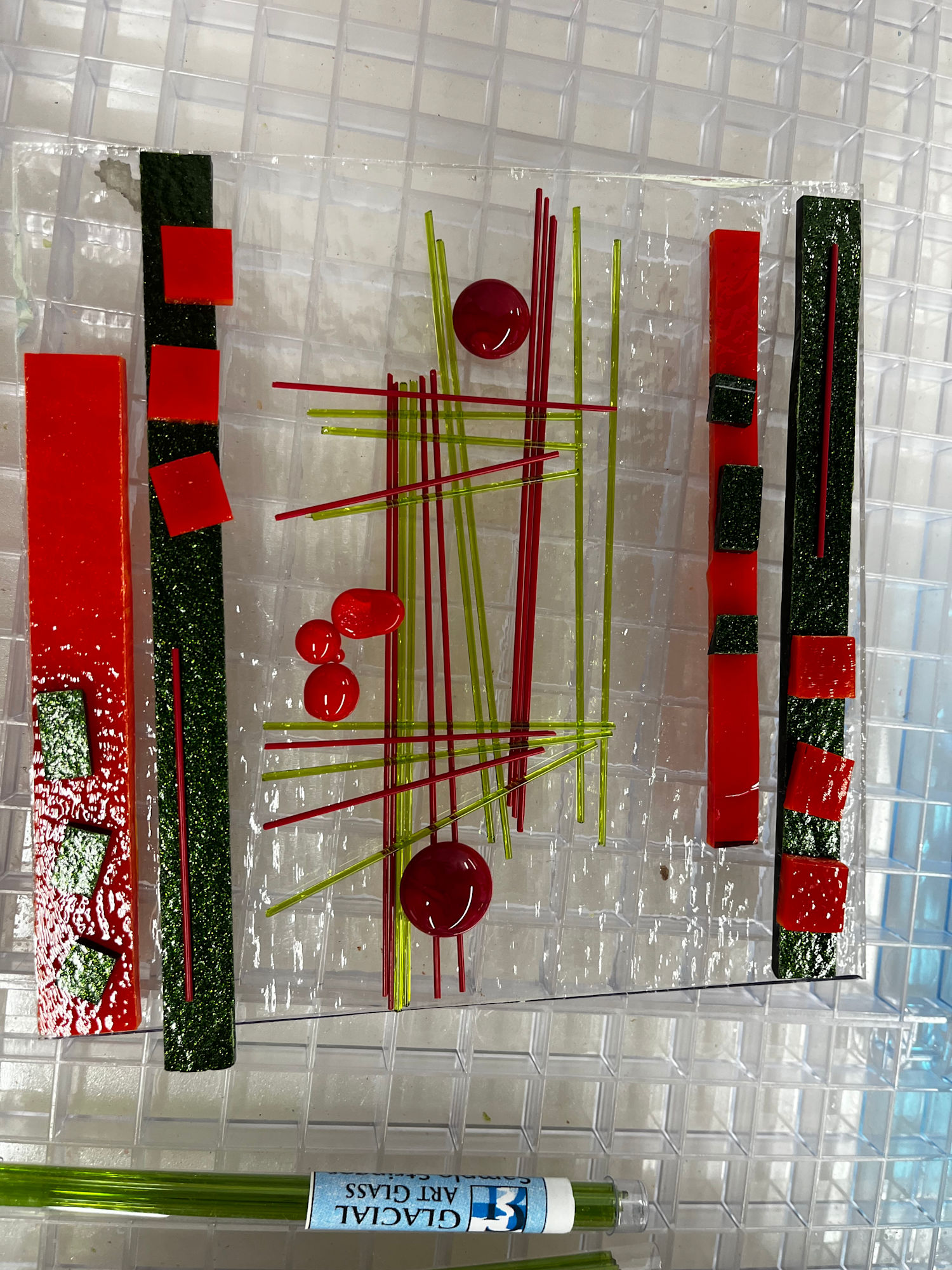 Abstract Square Red and Greens