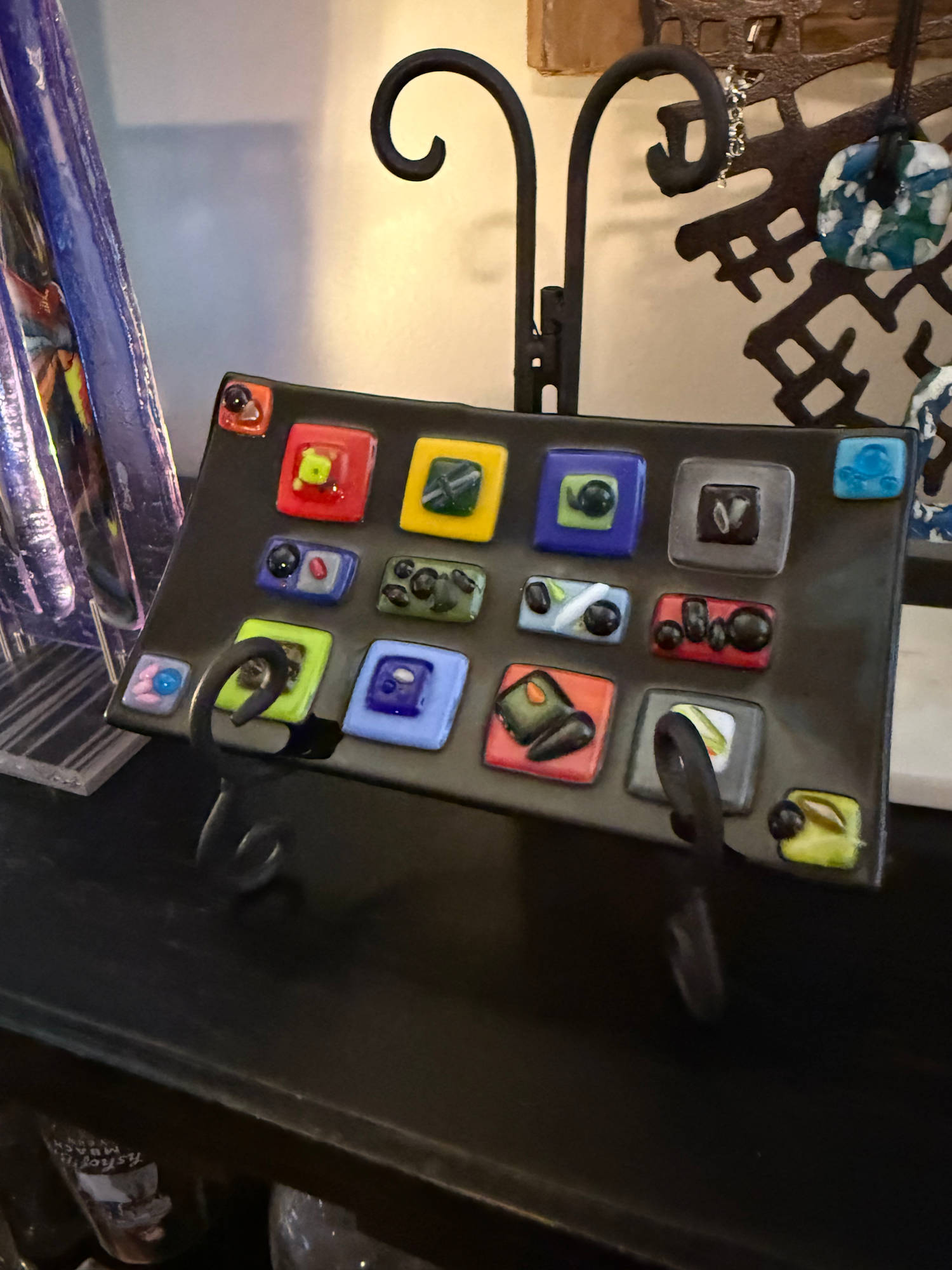 Black Sushi Tray With Multi Color Squares