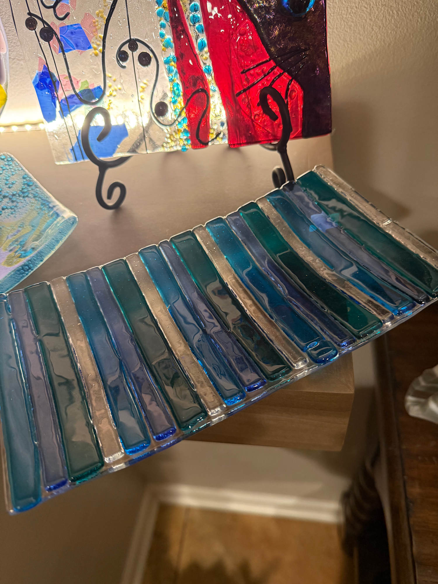 MCM Turquoise Streaky Dichroic Triangle Tray