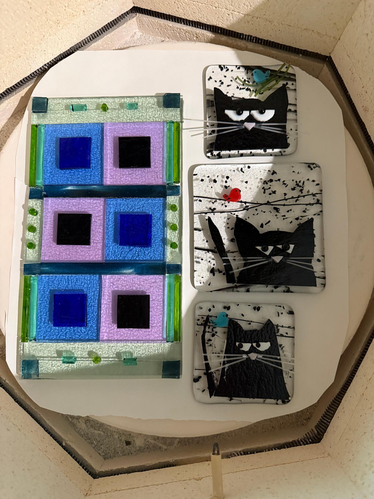 This 5 x 9 rectangle in the kiln will eventually become a tray after this fuse stage then a slump fuse phase.