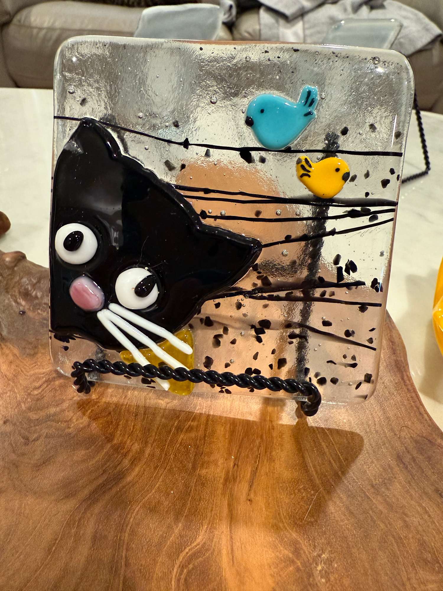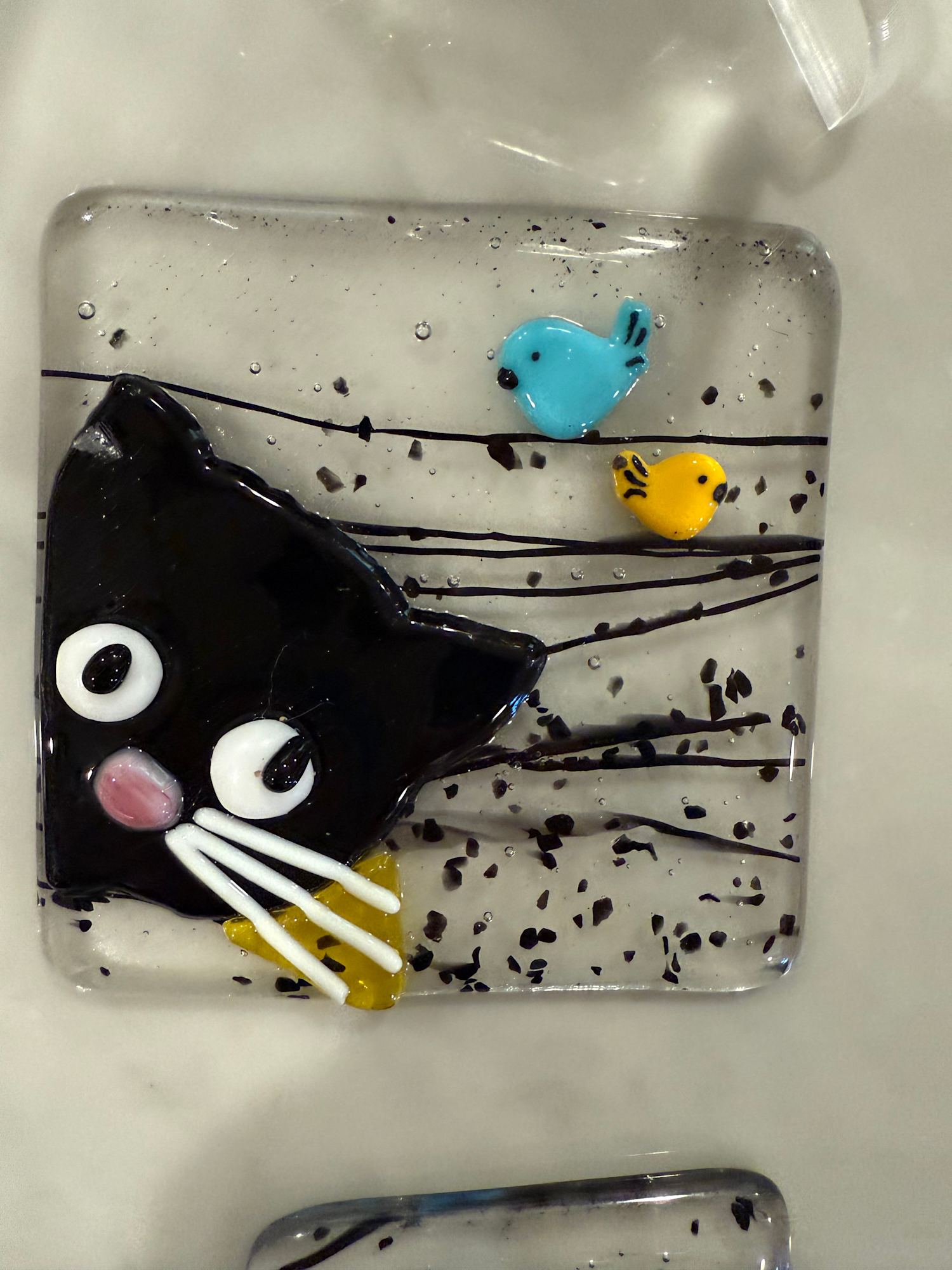 Peeky Black Cat 4” with Blue and Yellow Birds
