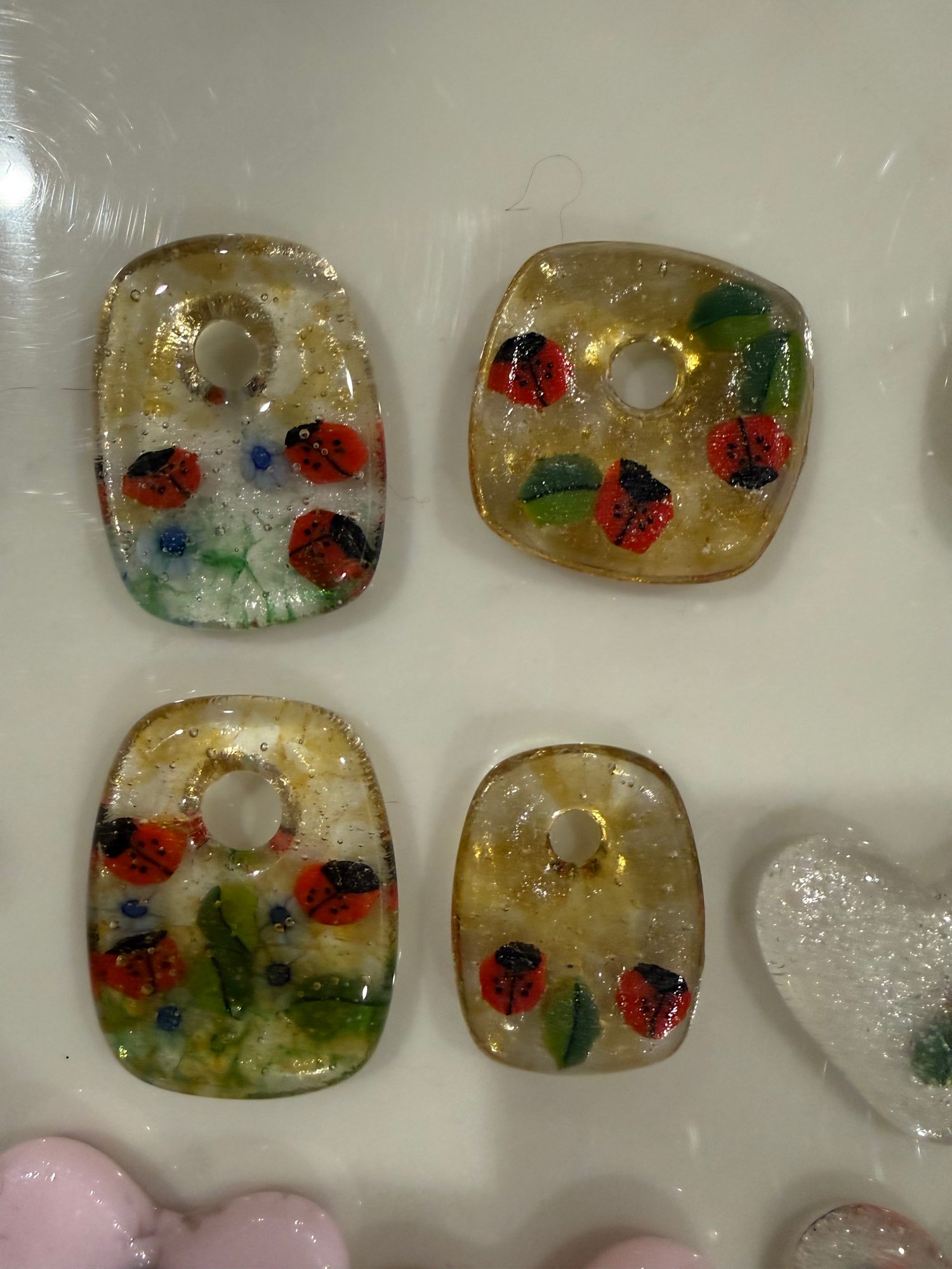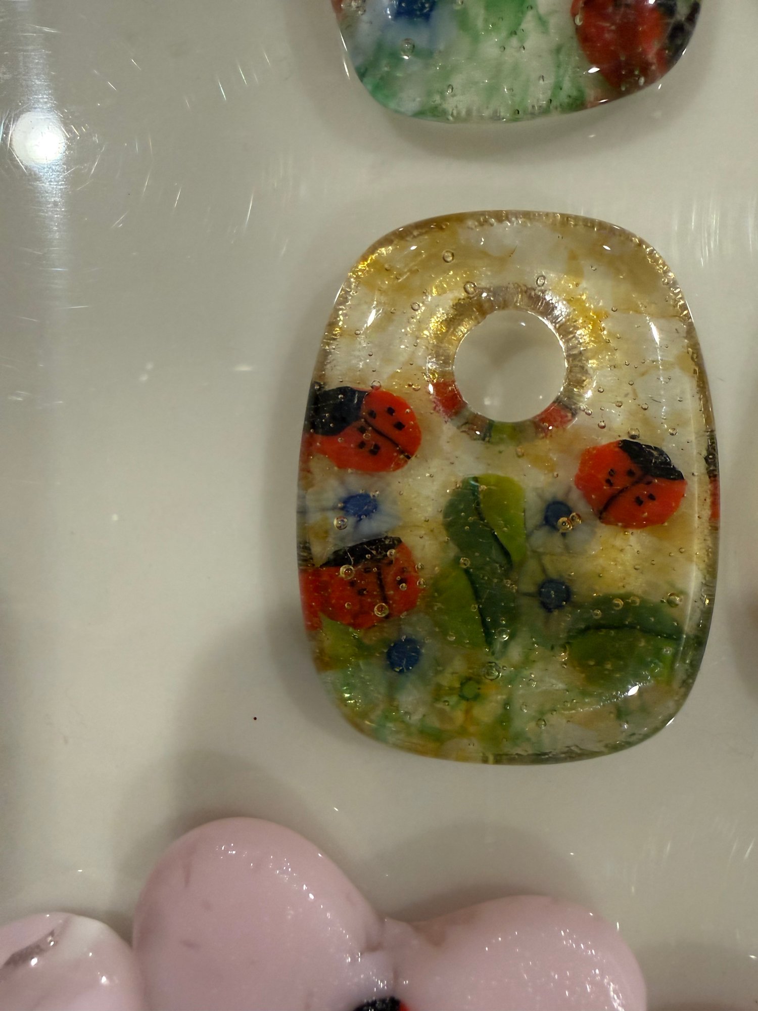 Rectangle Necklace Drop Ladybugs and Flowers #2