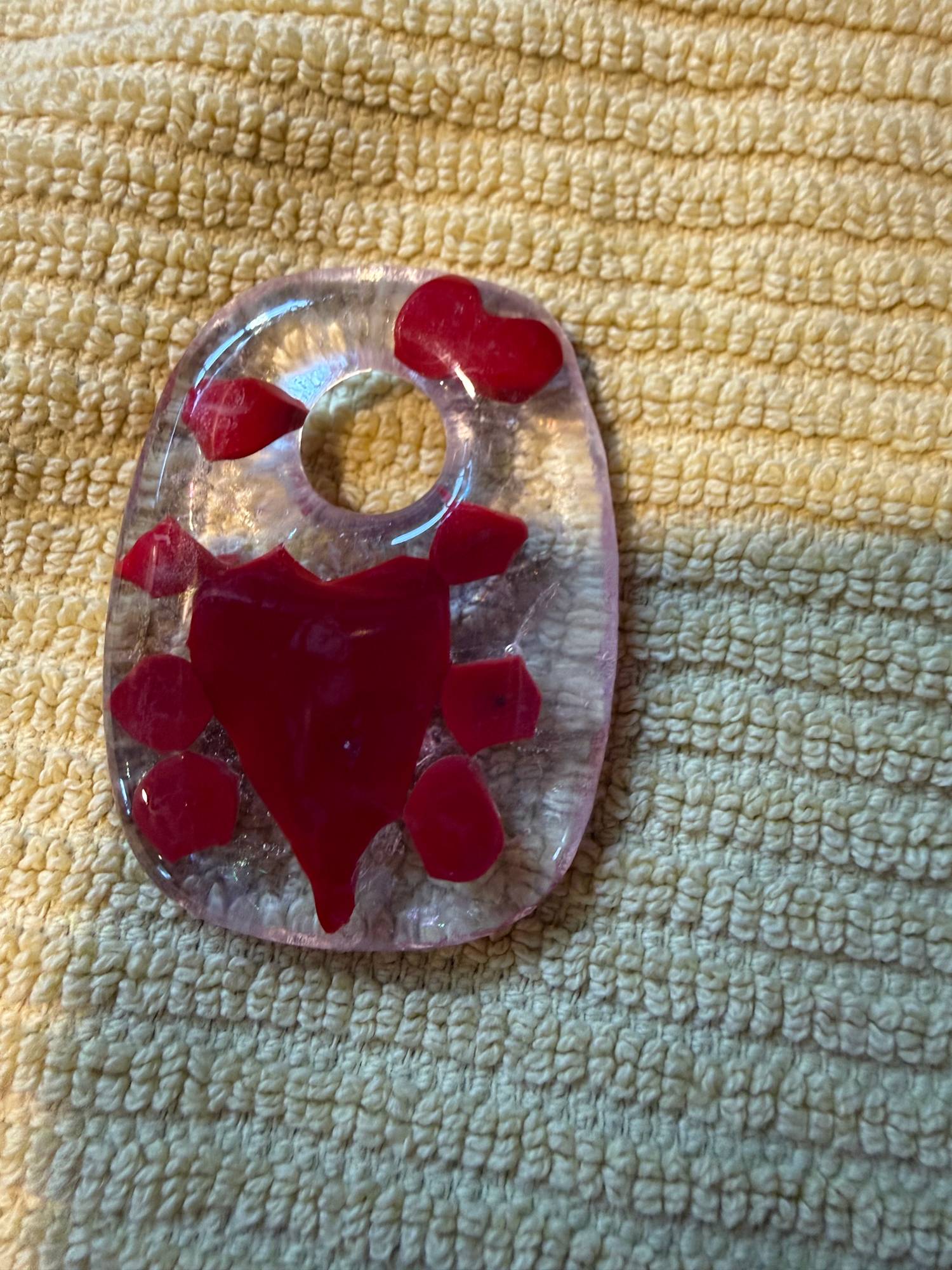 Rectangular Necklace with Red Heart and Dots