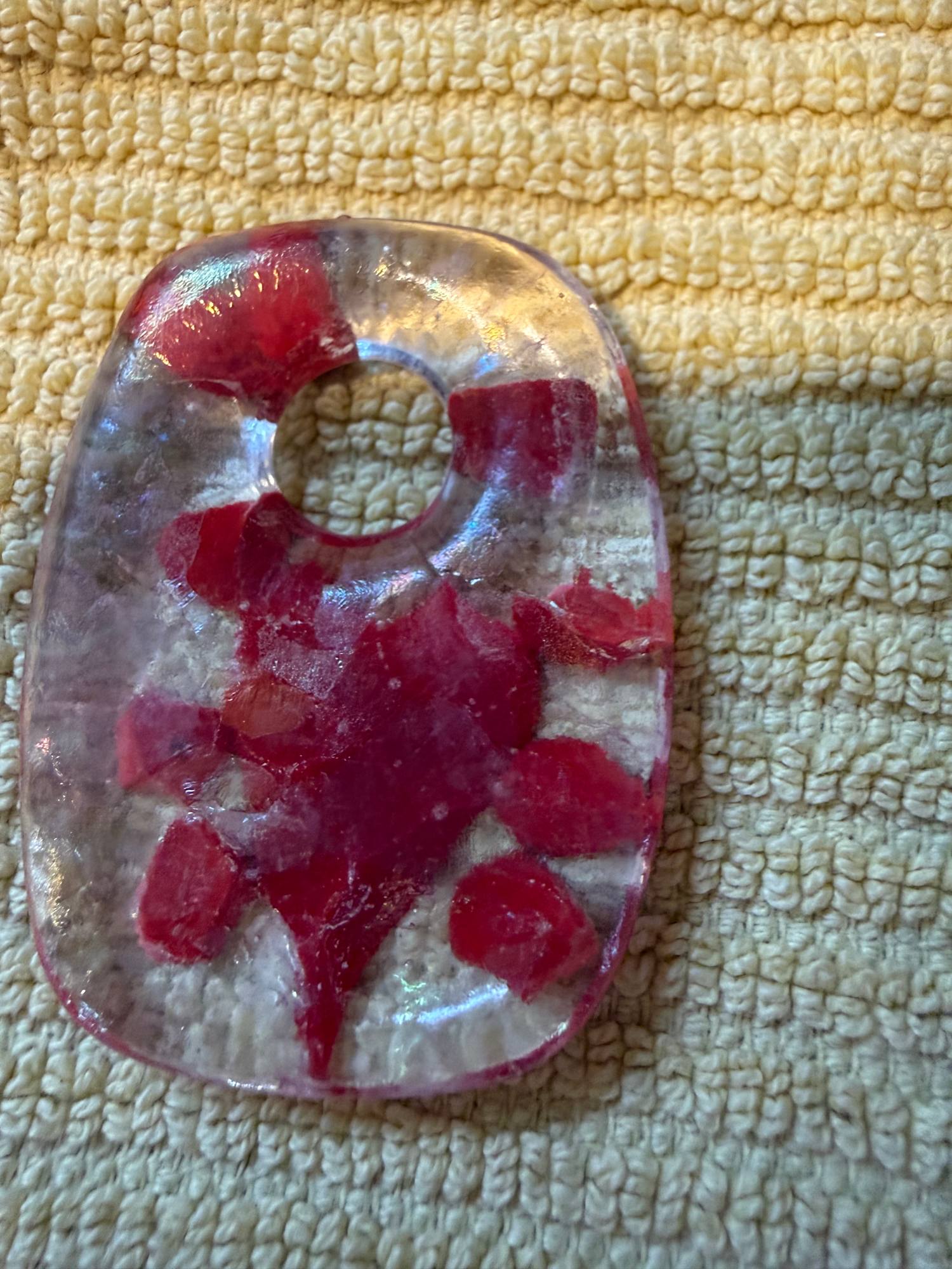 Iridescent Clear Square Necklace #1 with Red Dots