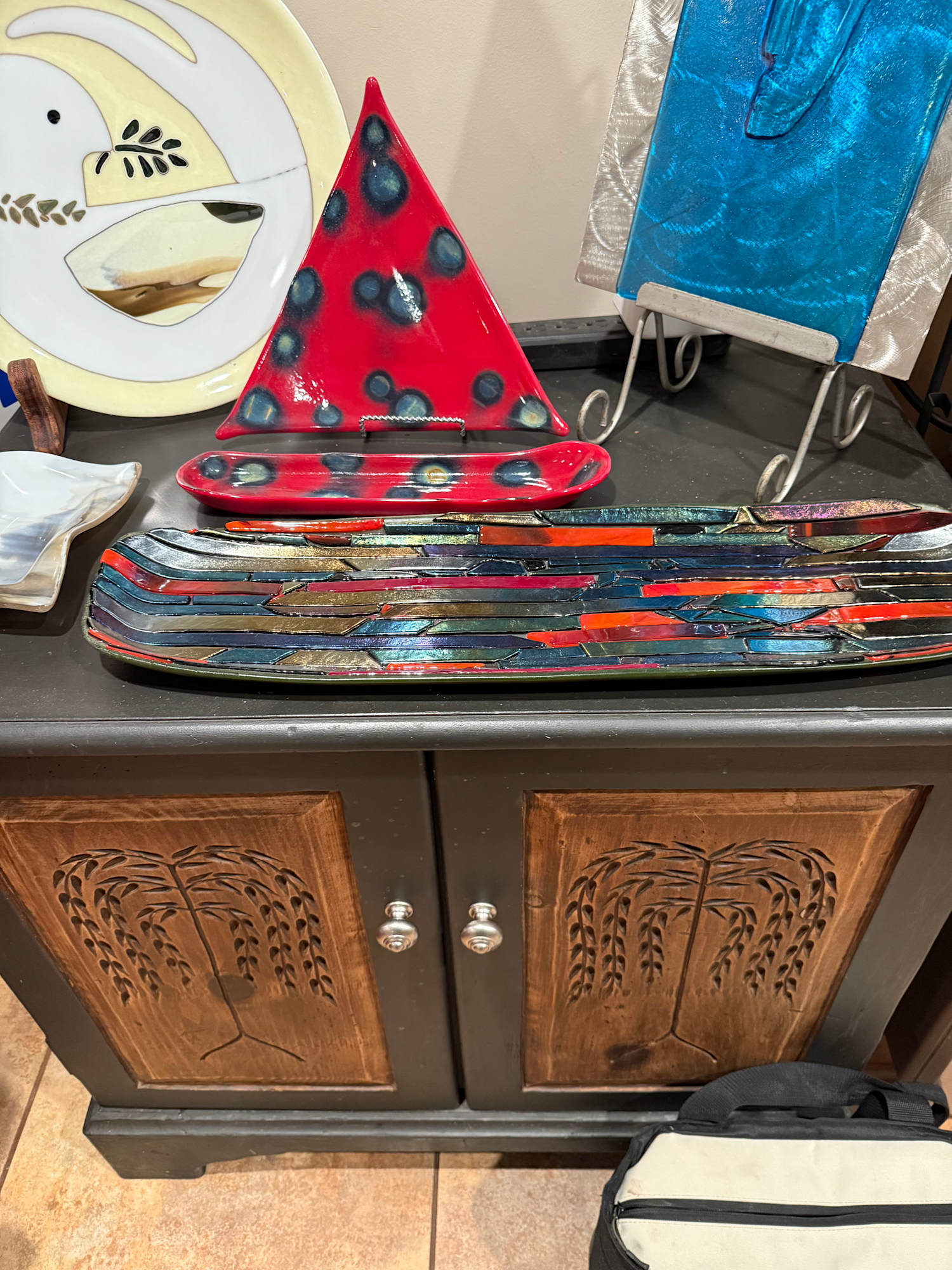 Red Triangle Plate with Silver Leaf Circles
