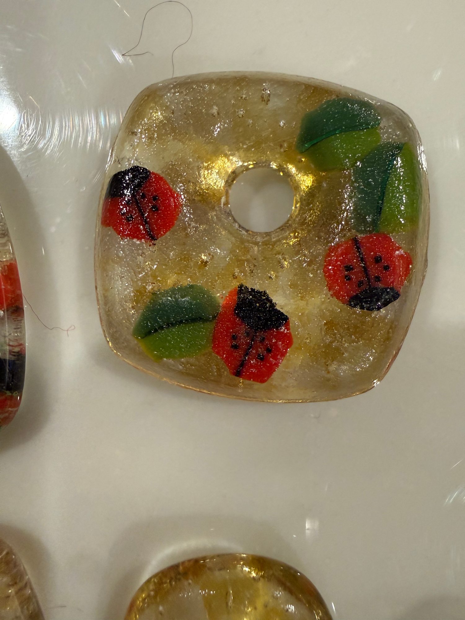 3” Square Glass Box #4 with 2” Pocket Heart on Bamboo Lid (Blue White Pink)