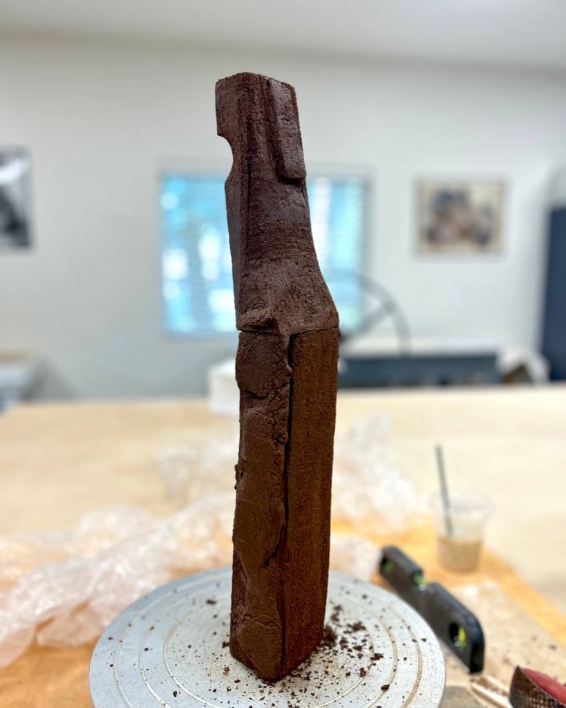 Laguna's dark horse clay, slab-built, hand-carved, fired to cone 5, adhesive